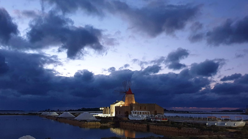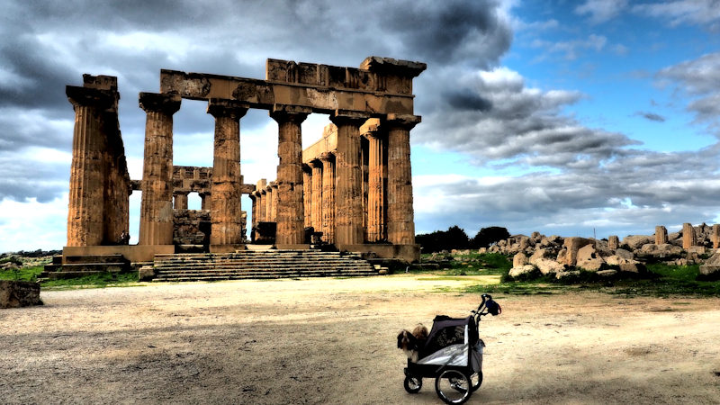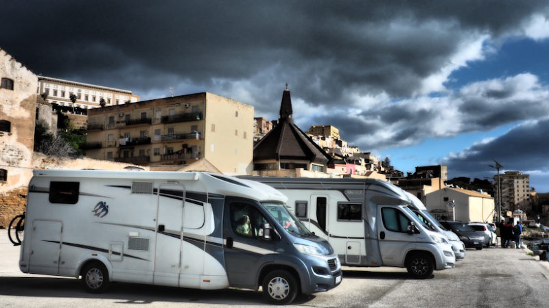 Wir flüchten regelrecht von unserem Stellplatz und fahren zum Frühstück in die Bar, wo wir am gestrigen Abend einen so netten Aperitivo hatten . Eine kurz Gassirunde mit unseren Fellnasen und dann ein entspannter Cappuccino und ein leckeres Cornetto….schon geht es uns besser und wir beginnen mit der Tagesplanung. Das Wetter für die Region Trapani sieht recht gut aus und so machen wir uns frisch gestärkt auf den Weg.