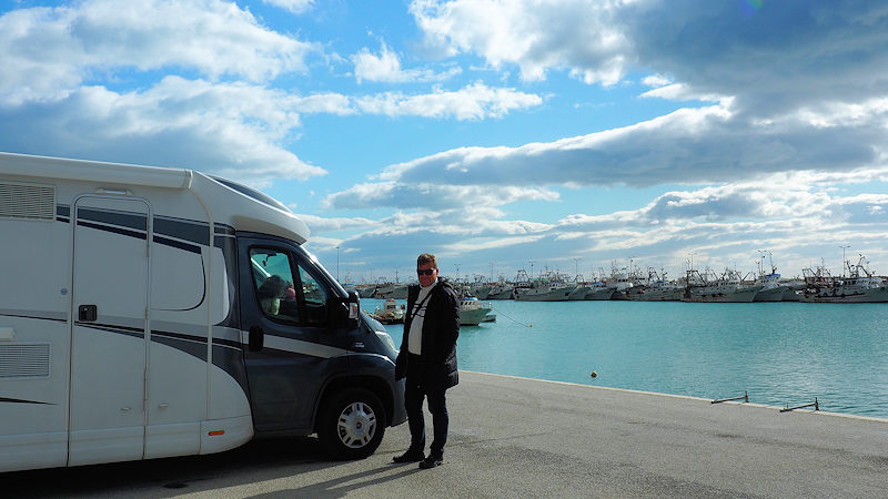 Unterwegs schauen wir uns noch den Stellplatz am Hafen von Sciacca an. Ein echt warmes Fleckchen aber es herrscht viel Durchgangsverkehr: Wir sehen uns kurz ein bisschen um und sitzen auch schon wieder im Womo, denn wir wollen vor den Windmühlen noch die Tempel von Selinunte besuchen