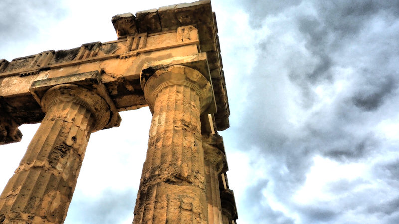 Die Wolken sehen zwar alles andere als nett aus und die Sonne lässt sich auch nur ganz kurz blicken. Aber wenn wir schon mal da sind, dann lassen wir uns eine solch schöne antike Städte nicht entgehen. Wegen eines Schauers fällt der Besuch aber leider kürzer aus, als geplant.