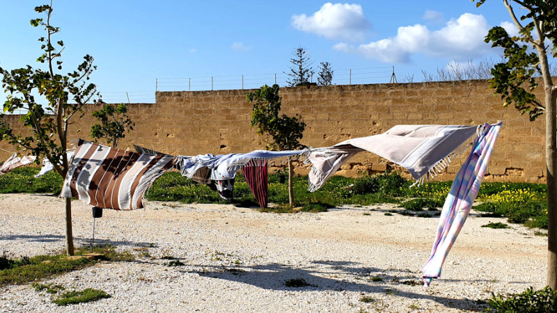 Der Empfang ist herzlich. Antonino ist sehr nett und hilfsbereit und erklärt uns alles haarklein. Auch ein paar Tipps für die etwa 1,5 km entfernte Altstadt hat er für uns. Aber heute sind wir faul. Wir bleiben auf dem Platz. Die Waschmaschine ist neu und unser Hochleistungswäschetrockner (die sizilianische Sonne und der starke Wind) helfen uns bei unserem Großwaschtag. Mittags genießen wir ein leckeres Pastagericht mit passendem Weißwein vor unserem Womo….Die Wäsche trocknet, die Maschine läuft, die Wäsche trocknet…aber dieses Mal nicht ganz. Wir schaffen es gerade so alles ins Wohnmobil zu packen, bevor ein heftiges Gewitter mit Starkregen niedergeht.
