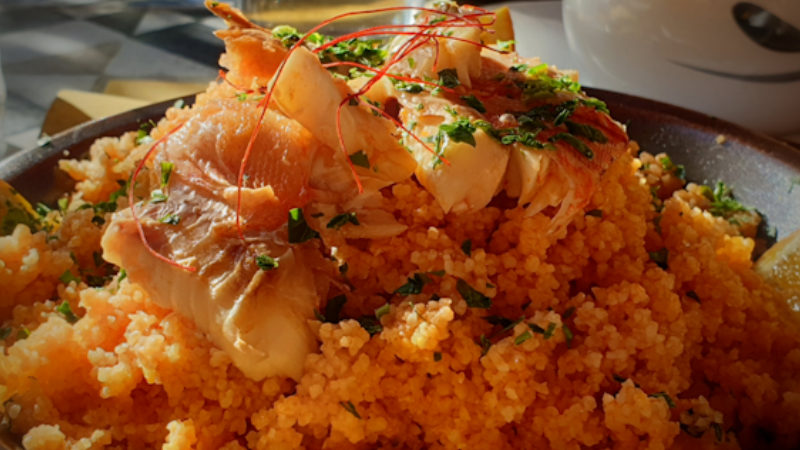 Wir kehren tatsächlich an das am Beginn unserer Stadterkundung gefundene, kleine Restaurant an der jetzt supersonnigen Piazza zurück. Und es ist auch ein Tisch in der Sonne frei. Die Karte besteht gerade mal aus 6 Gerichten….aber für uns stand eigentlich bereits beim Aufstehen fest: Wenn wir schon hier sind, dann soll es auch ein Couscous-Gericht sein. Wir entscheiden uns für einen leichten sizilianischen Weißwein und nehmen den Couscous mit Fisch – ein echter Traum in der Sonne, ein perfektes Mittagessen für den letzten Tag des Jahres 2019.