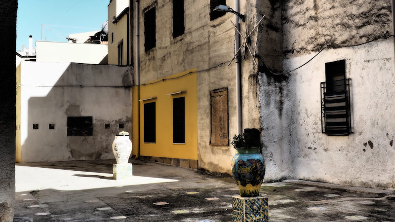 Es ist herrlich durch die Stadt zu schlendern. Die Menschen sitzen draußen, genießen einen Aperol Spritz mit Freunden in der Sonne….es ist schön, das Leben zu spüren. In einigen Alimentari (Lebensmittelläden) kaufen wir noch eine wenig Wein und Lebensmittel für unseren Silvesterabend ein, bevor wir tiefer in die Gassen dieser herrlich nordafrikanisch wirkenden Stadt eintauchen. Es ist gegen ein Uhr als Ralf Folgendes sagt: „Fehlt eigentlich nur noch der Muezzin, der zum Gebet ruft“ Kaum hat er es ausgesprochen, hören wir aus einer der Gassen, den durch Lautsprecher verzerrten Ruf „Allah ist groß, Allah ist mächtig! – Allahuakbar“. Tatsächlich passieren wir kurze Zeit später eine kleine Moschee, in der Menschen gerade beten. Wir hatten ja mit vielen Dingen gerechnet, aber damit nicht.