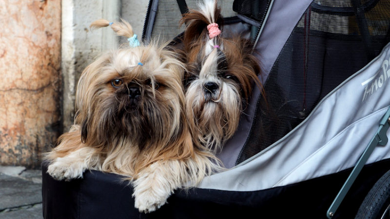 Gesagt, getan. Etwa um 14 Uhr erreichen wir Parma oder besser den Stellplatz etwa 4 km vom Zentrum entfernt. Außer uns sind nur noch drei weitere Womos da. Und der Empfang durch den Betreiber ist mehr als herzlich. Nach einem ausführlichen Checkin und dem Erwerb zweier Biglietti für den Bus sitzen wir auch quasi schon drinnen. Wir vier und das wichtigste Utensil für unsere Stadtbesuche: der Wagen von Allie und Deo – eine sichere Zuflucht für die beiden in belebten Innestädten.