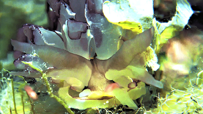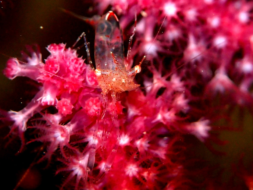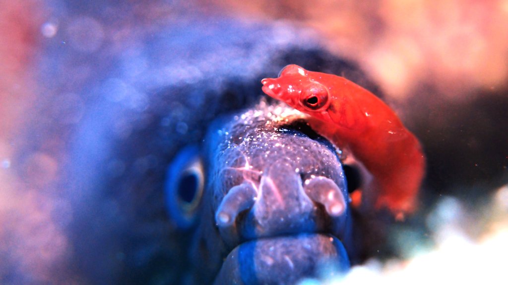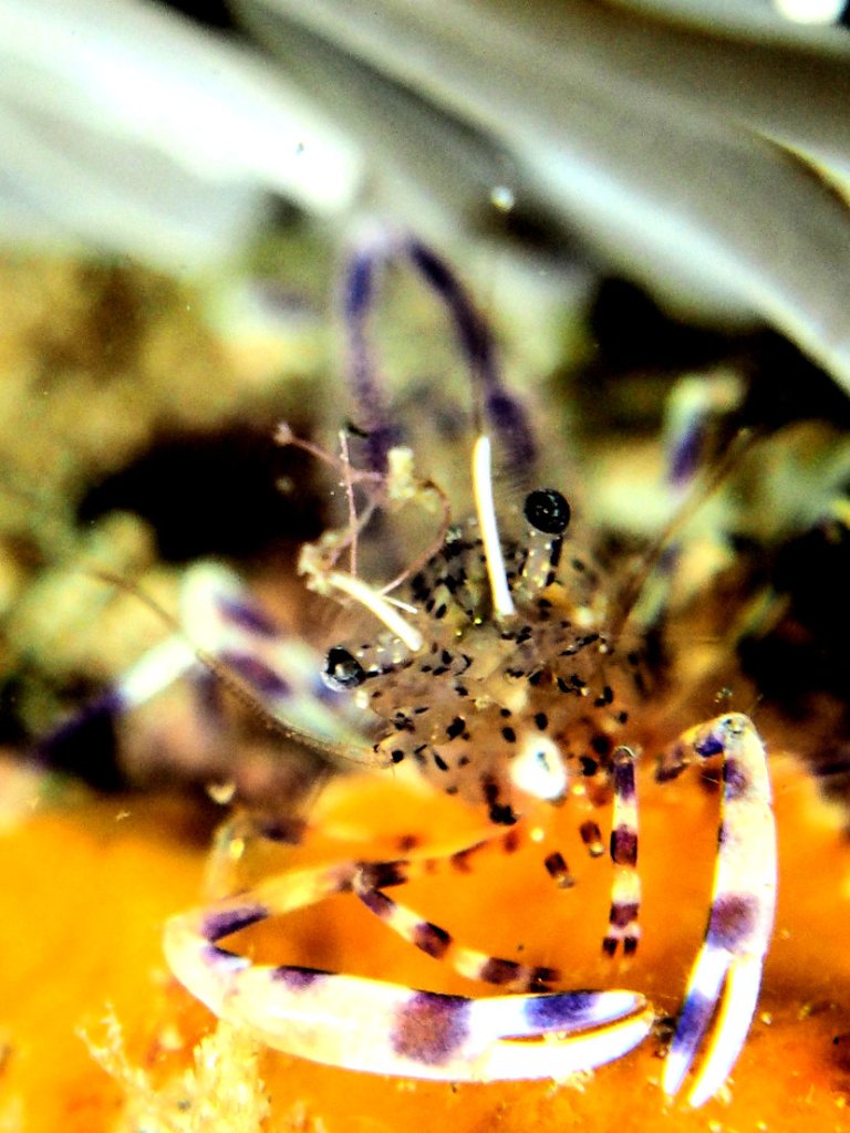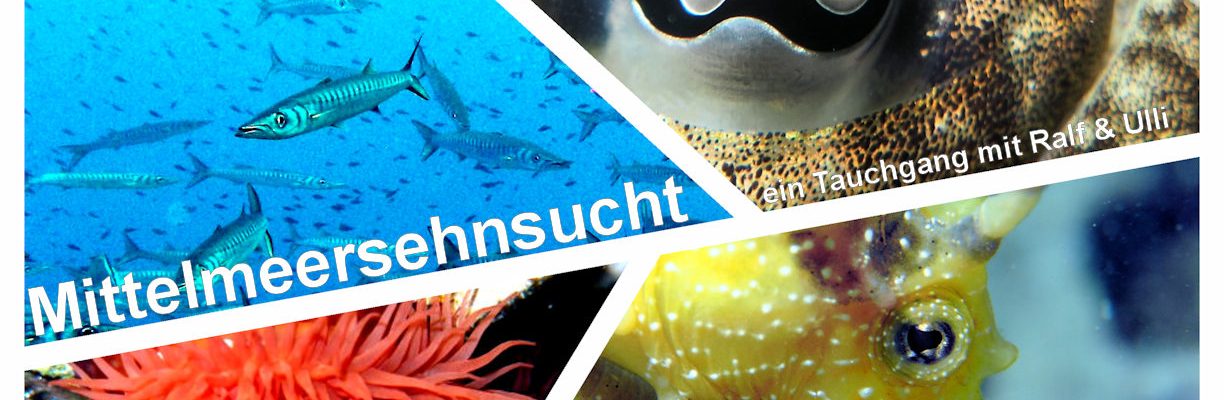 Dieser Moment gibt Dir soviel Energie, dass Du plötzlich jede Menge der einigartigen Mittelmeerbewohner findest. Eine neugierige Muräne lässt Euch ganz dicht heran. Das Riff „Phantasia“ scheint ein warer Hotspot für die Mittelmeefauna zu sein. Neben diverser Nacktschnecken zeigen sich auch einige filigrane Garnelen.