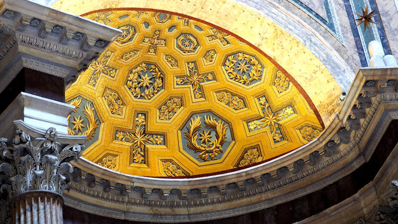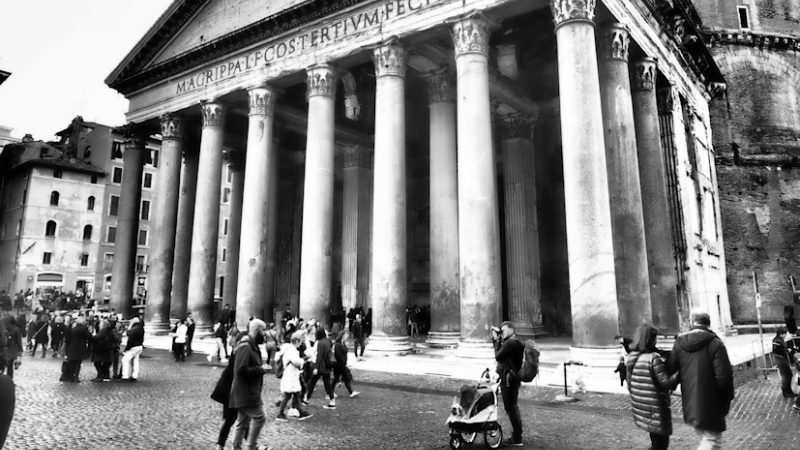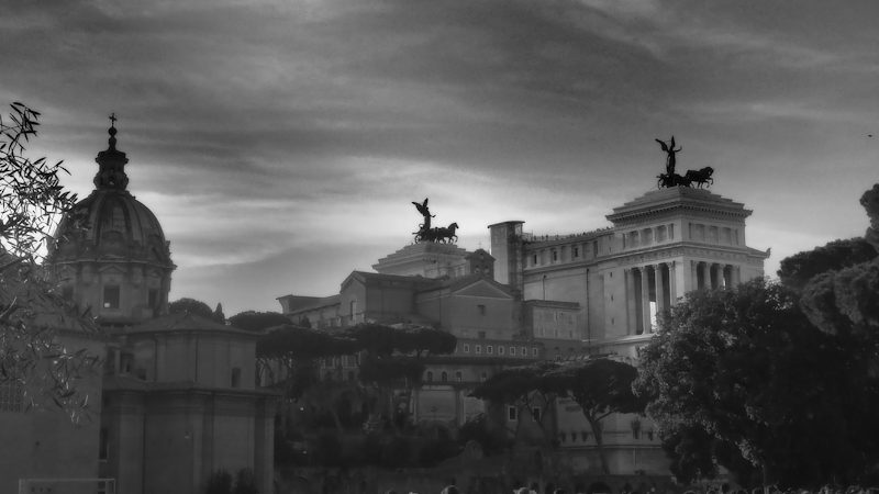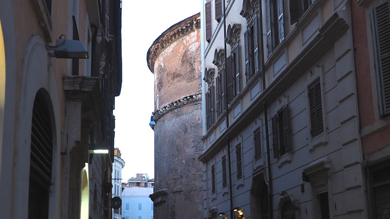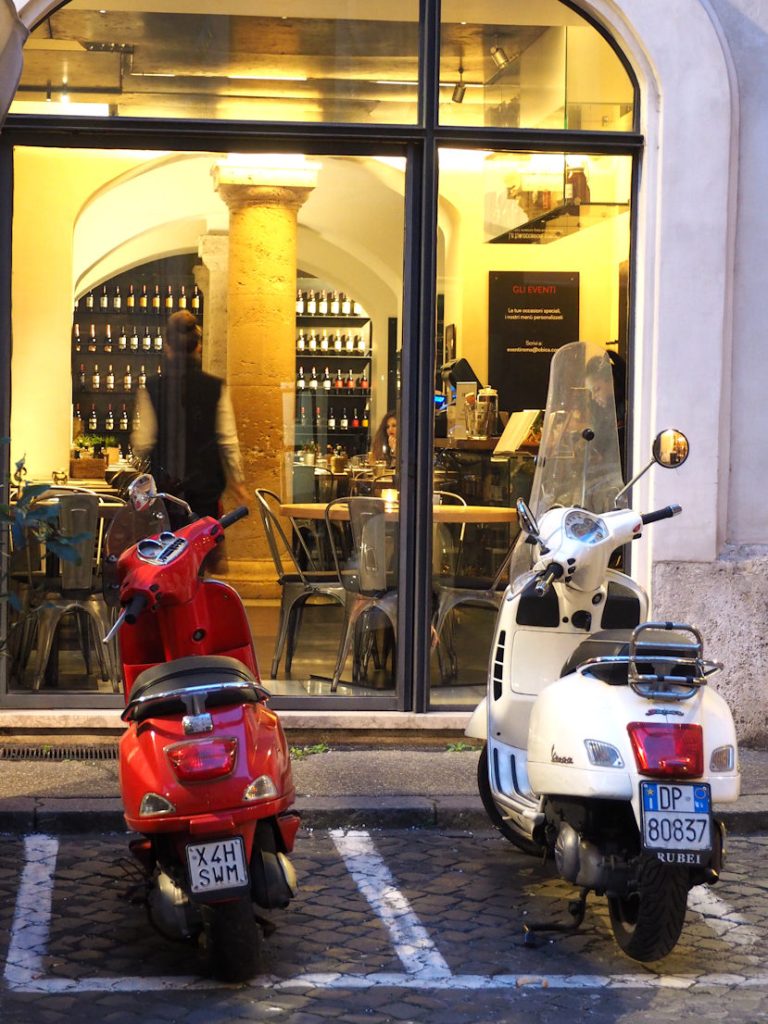 Nach dem Bummel am Kolosseum und dem Triumphbogen laufen wir über das Forum Romanum zum Denkmal von Vittorio Emanuele. Ab hier lassen uns einfach durch die Straßen treiben und landen schließlich auf der Piazza di S. Eustacchio in der Nähe des Pantheon, wo wir unseren ersten Aperitivo inmitten vieler Römer genießen. Die Bar ZeroOttoNove hält ein ganz besonderes Abenteuer für uns bereit. Der Weg dort zur Toilette ist eine Fahrt in einem sich in Zeitlupe bewegenden Lastenaufzug in die Katakomben der Stadt. Kaum im Aufzug ist das Mobilfunknetz weg. Was, wenn man stecken bleibt? Die Frage geht Ulli durch den Kopf, als der Aufzug „Fahrt aufnimmt“. Geht aber alles gut und 2 Rotwein später stehen wir vor dem für uns schönsten Gebäude Roms, dem Pantheon.