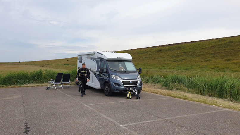 Das kann ja heiter werden. Tatsächlich weckte ihn einfach nur die Vorfreude auf’s Tauchen. Deshalb sind wir ja auch hier. Eintauchen ins Grevellinger Meer und die Osterschelde…wobei Ulli sich gerade wundert.