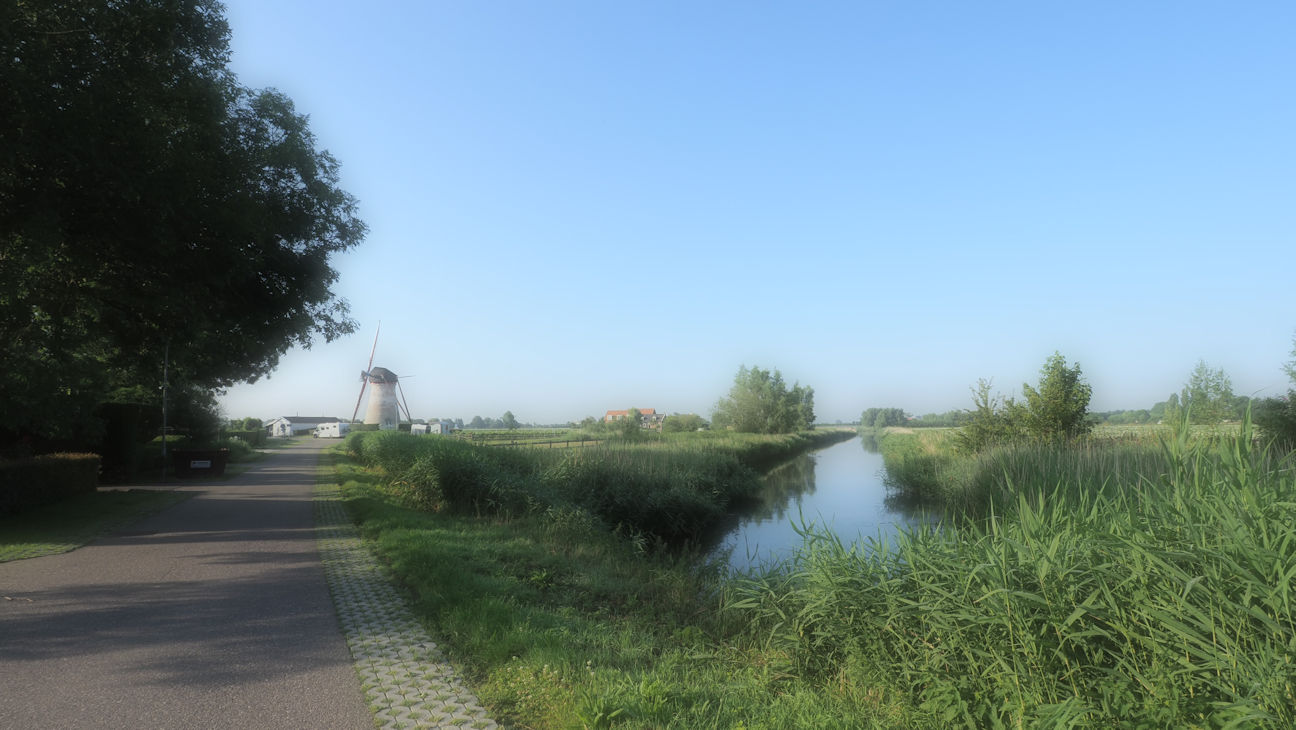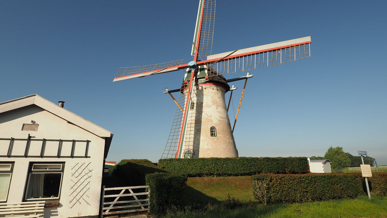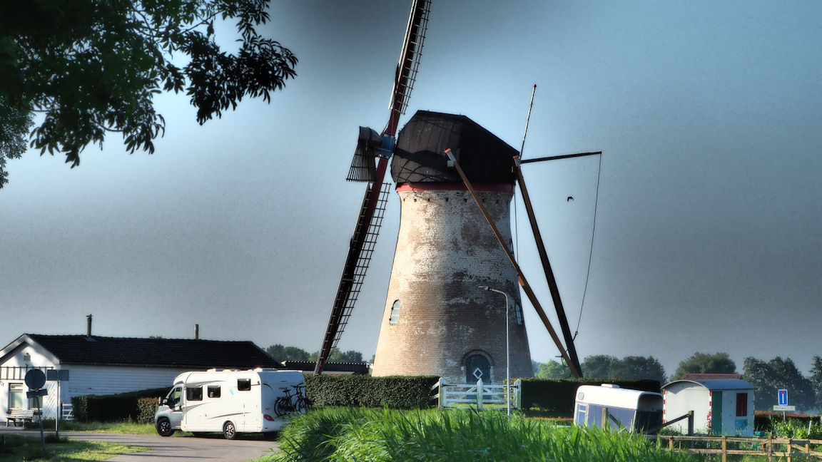 Vorm Frühstück verlassen wir unseren Stellplatz und fahren ins benachbarte Dreischor. Dieser Ort oder vielmehr die Form soll bereits bei einer Siedlung aus der Vorsteinzeit so bestanden haben. Unser Parkplatz ist mehr oder weniger ein Zufallstreffer, denn wir parken direkt an der Aeolusmühle.