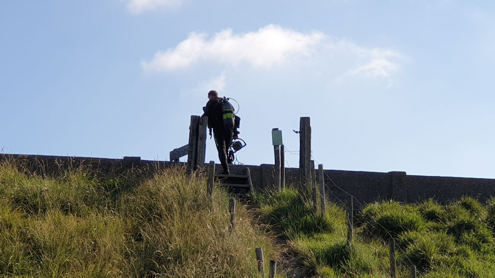 Von hier aus geht es über das erneute Flaschenfüllen an Frans Kok direkt nach Brouwershaven, denn Ullis Füsslinge sind mitten in der Sohle durchgerissen. Der kleine Tauchladen Dolphins am Markt hat den passenden Ersatz. Es folgt ein Lebensmitteleinkaufsschwenk im Sparmarkt und schon sitzen wir wieder im Womo und sind auf dem Rückweg nach Zonnemaire….