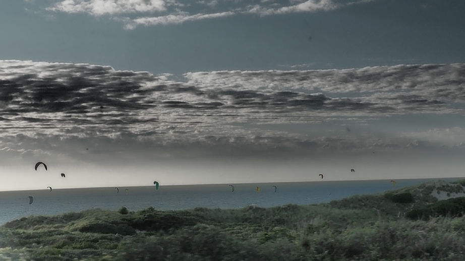 Nach einer Kurz-OP an Amadeos Pfote am Straßenrand (Holzspahn eingetreten) geht es über das Deltawerk zurück nach Schouwen-Duiveland zum Brouwersdamm. Hier wollen wir bei Kibbeling mit Remouladensauce den Sonnenuntergang genießen.