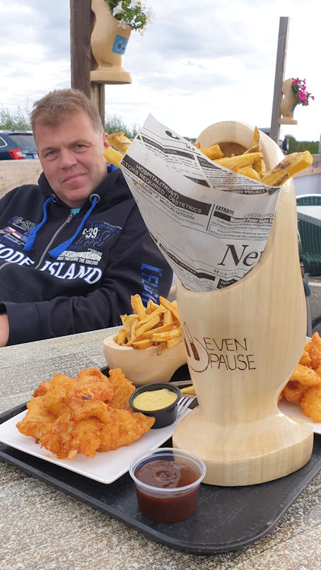 Gott sei Dank gibt es aber nicht nur eine Frittenbude auf Schouwen Duivenland. Wir entscheiden uns für den Besuch in „Even Pause“ am Tauchplatz Den Osse Nieuwe Kerkweg. Und es lohnt sich. Der Kibbeling ist lecker und wo bekommt man schon seine Pommes im Holzschuh serviert?