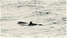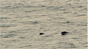 Kaum sind wir zum Sichtweitencheck auf dem Deich angekommen, können wir sie in der morgendlichen Stille schon hören….Schweinswale beim Ausatmen an der Oberfläche – klingt so ähnlich, als würde man völlig erschöpft einen riesigen Schnorchel ausblasen! Und dann sehen wir sie auch…permanent zeigen sich ihre Rückenflossen und ab uns zu mehr. Leider weiß unsere Kamera nicht, wo genau die Jungs gerade auftauchen. Aber ein paar Fotos gelingen uns während der etwa 15 Minuten dauernden Vorstellung. Und es sind nicht nur Schweiswale!! Da schmeckt das Frühstück nochmal so gut!!