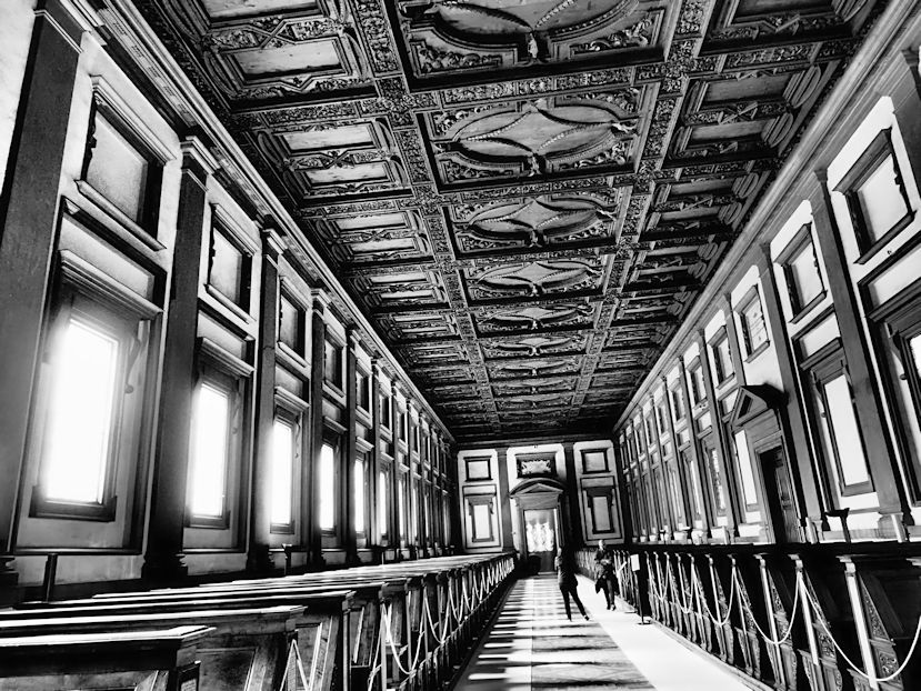 Fast direkt neben dem Dom befindet sich die wundervolle Medicikapelle – die Grabeskirche der Medici, deren Besuch lohnt. Hier muss man auch nicht so lange anstehen wie an der großen Schwester Santa Maria Maggiore. Und wenn wir schon mal da sind, nutzen wir die Möglichkeit, uns die von Michelangelo erschaffene Bibliothek anzusehen – ein richtig tolles Erlebnis die tollen Intarsien im Boden oder aber die beeindruckenden Bücher, die hier ausgestellt sind.