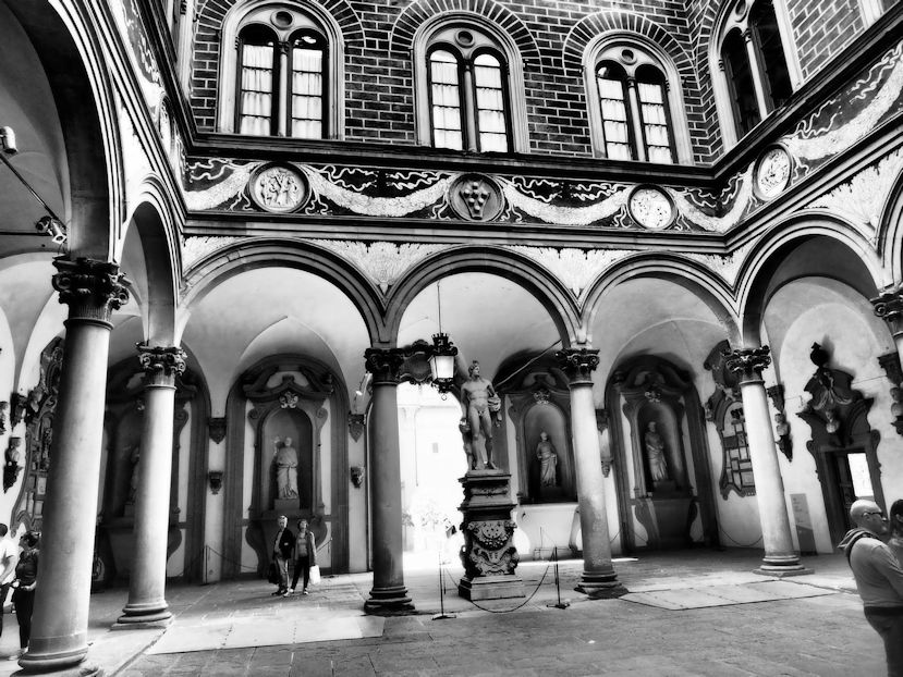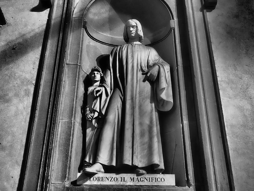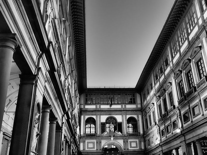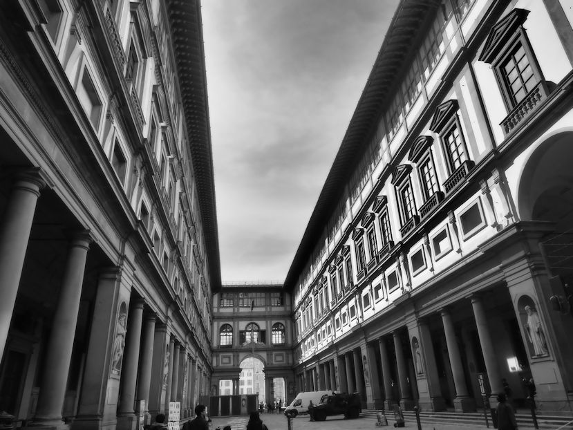 Mit dem Foto in der Hand kann das dann schon mal etwas länger dauern. All diese Abbilder der für diese Wiege der Kultur wichtigen Menschen müssen erneut begutachtet und abgelichtet werden hier im Innenhof der Uffizien…und natürlich versucht man im Vorbeigehen, den für einen selbst schönsten Moment aus der schönsten Perspektive festzuhalten. Und das kann dauern….