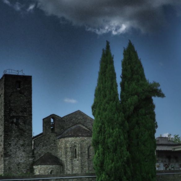 In der Zwischenzeit hat sich der Stau um Mailand fast aufgelöst…es stockt zwar noch etwas, aber die Fahrt verläuft im Großen und Ganzen sehr entspannt. Für die Mittagspause wählen wir den kleinen Parkplatz vor der Pieve di Sorano….es ist sonnig und hat 28 Grad…der Platz ist perfekt…und die Kulisse wunderschön…