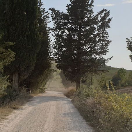 Nach einem ausgedehnten Cappuccino auf der Terrasse der „Val d’Orcia-Alm“ führt uns unsere Fahrt über Contignano zum Parkplatz vor „Dopolavoro La Foce“, dem Restaurant gegenüber der bekannten Zickzackallee. Jetzt um kurz nach zwölf bekommen wir noch einen einigermaßen, angemessenen Parkplatz, aber bereits kurz nach unserer Ankunft sind fast alle Plätze belegt. Zum Glück haben wir unseren Tisch für ca. ein Uhr schon reserviert.