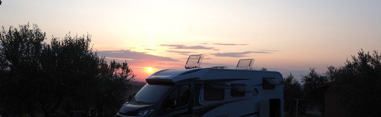 Hier dürfen wir wieder genau dort parken wie beim letzten Mal….nur leider gibt es kein gemeinsames Abendesssen, denn jetzt zu Coronazeiten kochen die beiden leider nicht für ihre Gäste….Schade…aber hier zu stehen und den Ausblick und den Sonnenuntergang zu genießen….was will man mehr….vielleicht noch ein Glas Rotwein und dann setzt die volle Zufriedenheit ein….