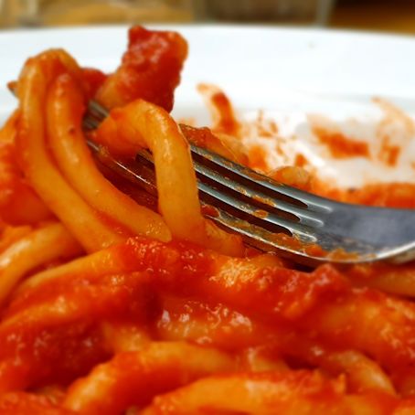 Im Restaurant selbst sind fast nur Italiener…Eine Burrata serviert mit einem Schinkentraum und ein Teller mit verschiedenen Leckerein „al km0“ begleitet von einem Weißwein eines Weingutes um die Ecke stimmen uns in unser Essen ein….und dann folgen die langersehnten Pici….all’Agione und al Ragu Toscano…