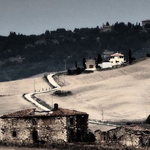 Gut ausgeruht geht unsere Fahrt weiter nach Pienza zum Kurzeinkauf mit „italienischem“ Parkplatz direkt vor der Tür, d.h. direkt vor der Tür!! Anschließend schnell zu Bindi Enzo ein wenig Einkaufen und Schwätzchen halten und dann weiter zum etwas einsam liegenden Podere dell’Albergo zu Carla und Luciano, denn dort wollen wir unsere Nacht verbringen. Als wir dort ankommen, kommt auch endlich die Sonne wieder zum Vorschein.