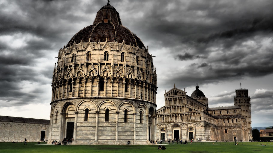 Lucca verlassen wir gegen 17 Uhr und erreichen über die Landstraße und San Giuliano Therme Pisa. Bei unserer Ankunft ist es bewölkt und die ersten Fotos der „drei Schönheiten“ der Piazza dei Miracoli sind zwar ganz nett, aber das gewisse Etwas fehlt. Aber der Wettergott hat ein EInsehen und der Sonnenuntergang taucht die drei Wahrzeichen Pisas in ein goldenes Licht. Ein echtes Schauspiel, das uns darin bestätigt, daß es manchmal besser ist, seine Pläne umzuschubsen und der Sonnen zu folgen….