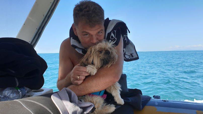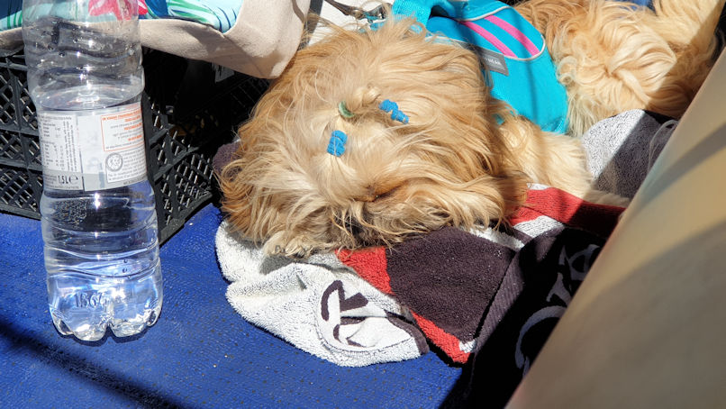 Einigermaßen im Zeitplan treffen wir in Porto Santo Stefano an der Basis von Susanna ein. Ausladen, Papierkram abgeben und schon sitzen wir auf dem Boot. Das Wasser schimmert in der Sonne wunderbar türkis – liegt aber am vielen Sand, der nach dem Sturm im Wasser schwimmt und leider die Sicht sehr eintrübt.