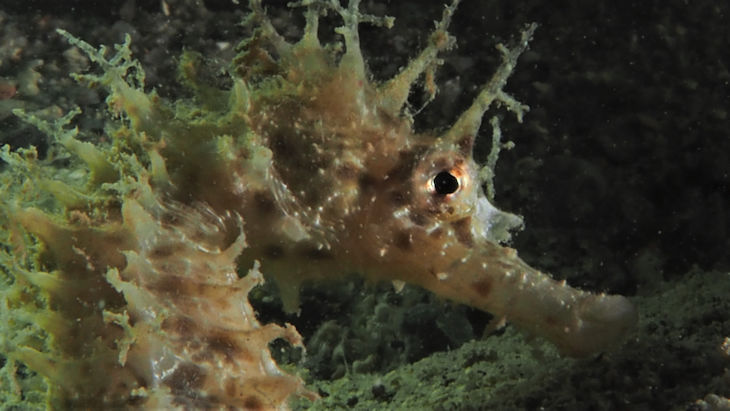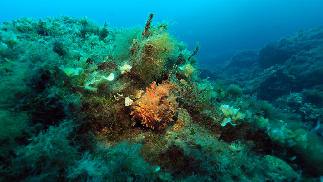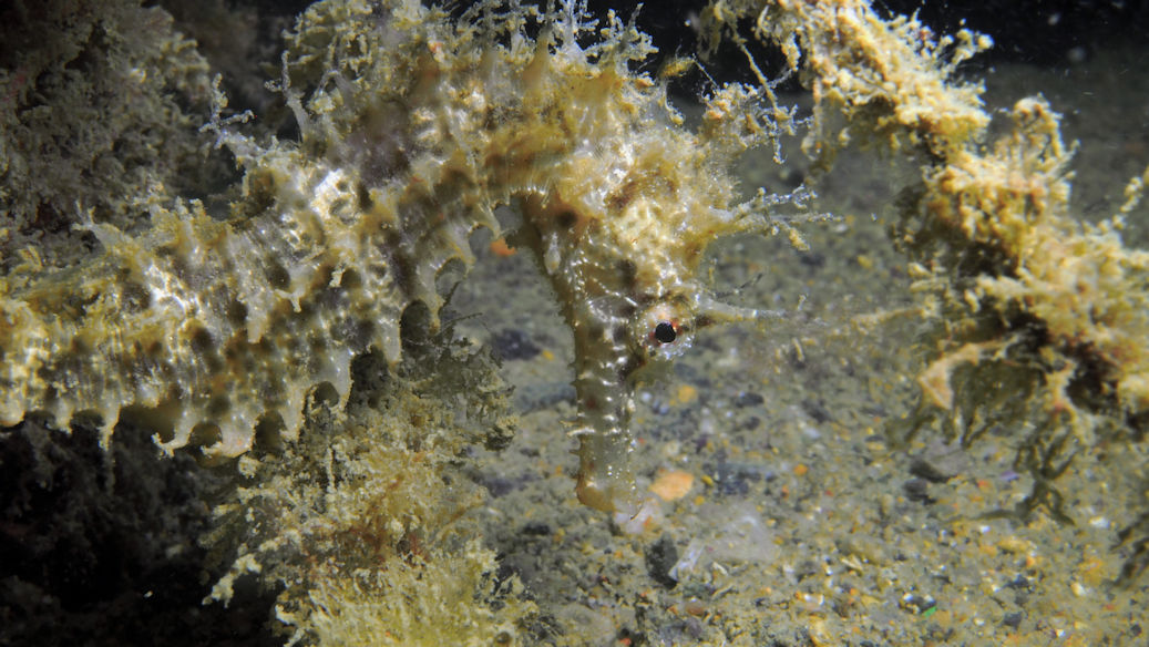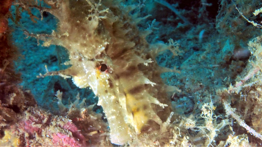 Unser erster Tauchplatz ist die Nordseite der Insel Argentarola. Hier im Windschatten ist das Wasser sehr ruhig. Unter Wasser findet man das normale Mittelmeerleben, schade nur das der Sturm die Sichtweiten von letzter Woche zerstört hat. Die Wassertemperatur ist noch angenehm und die Ausfahrt hat nun auch mal etwas mit Tauchclubausflug zu tun. Kaum an Land geht es erneut ins Wasser, denn unser Freund Salvatore hat uns von seiner letzten Seepferdsichtung erzählt. Wäre doch gelacht, wenn wir dieses nicht auch finden könnten. Aber der erste Blick unter die Wasseroberfläche lässt die Hoffnung fast schwinden.