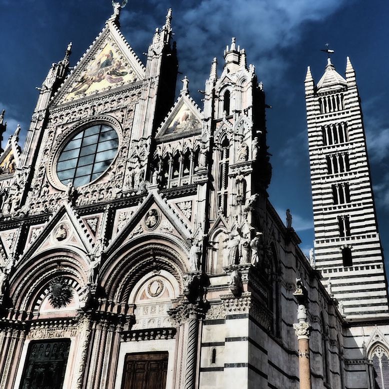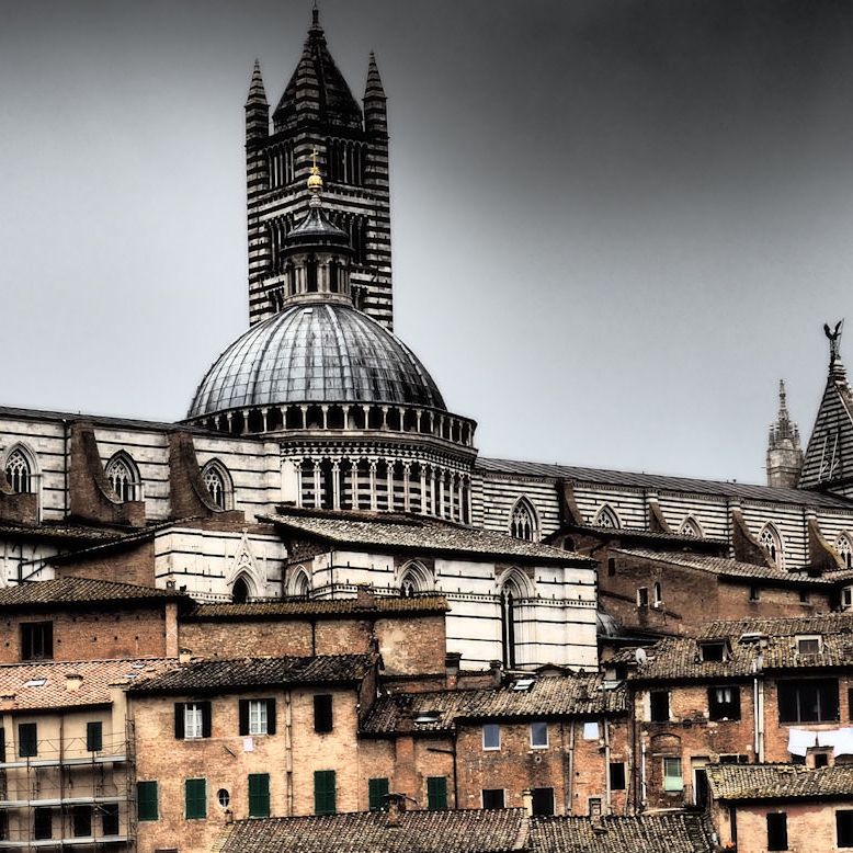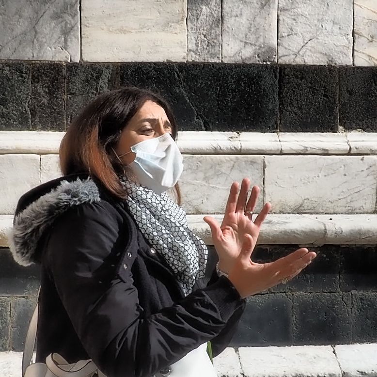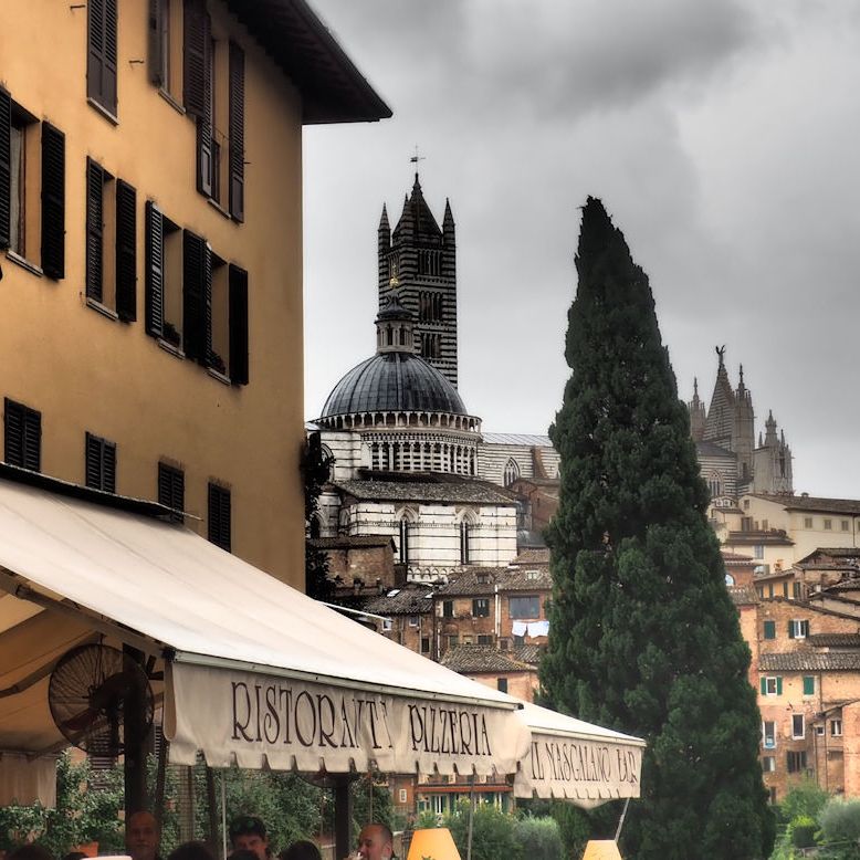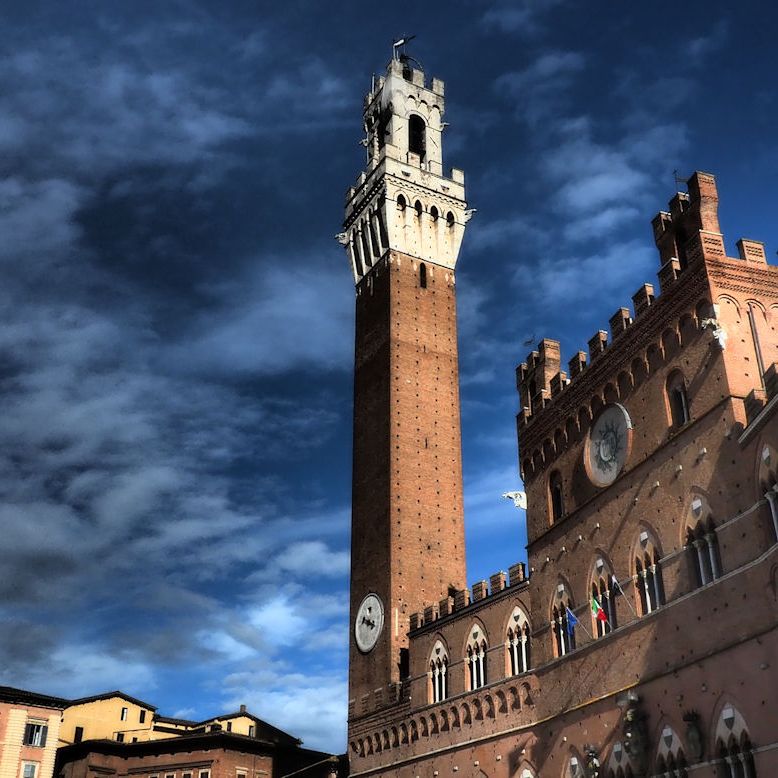 Während des Lockdowns wuchs hier sogar Gras und es wurden immer wieder Wildtiere, wie Rehe, Wildschweine oder Hasen im Zentrum gesichtet. Ein kurzer Einblick über den Torre Mangia, den über 100 Meter hohen Turm der Stadt und den Palio, dem weltberühmten Pferderennen, und schon stehen wir in der Nähe von San Domenico vor einer typischen, sienesischen Eisdiele. Ein leckeres Eis beendet unsere Stadtführung.