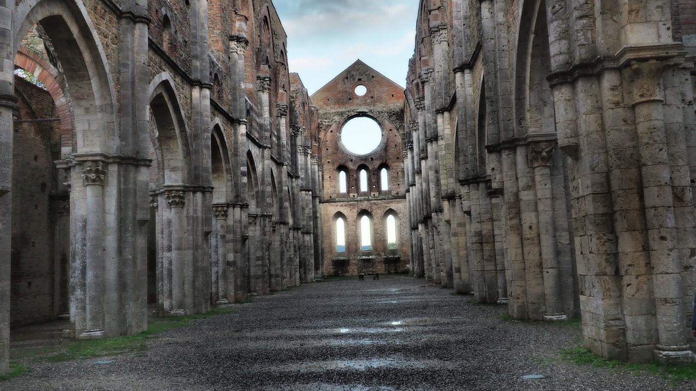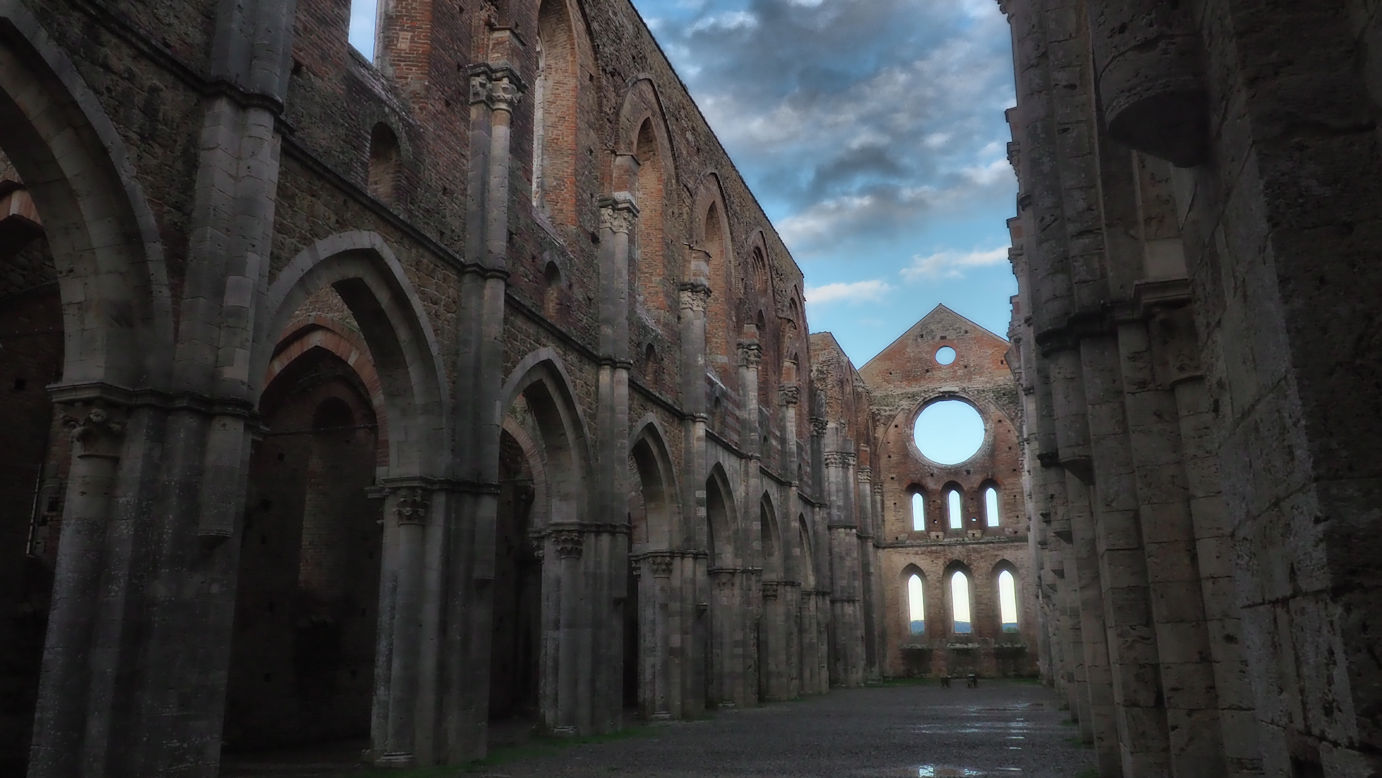 In etwa 45 Minuten Fahrzeit erreichen wir die Abtei San Galgano gegen 18 Uhr. Die erhoffte Abendsonne verkriecht sich hinter einer großen Wolke, aber auch die Wolkendämmerstimmung ist wundervoll. Hier sprechen die Bilder für sich….ein wahrhaft magischer, lange Zeit von den Menschen vergessener Ort…