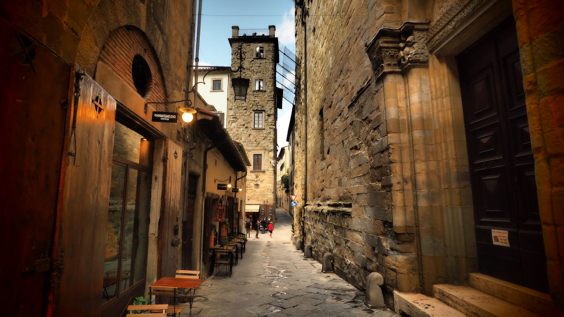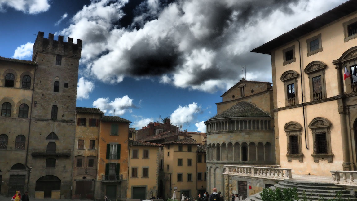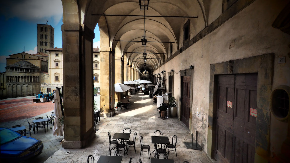 Nach einer Gassirunde mit den Fellnasen geht es weiter nach Arezzo. Hier erfüllen zwei Schweizer Paare jeweils mit Wohnmobil das „Kosakenzipfelklischee“ Es fehlt eigentlich nur noch, dass sie sich gegenseitig den Toilettentank ausleeren. Egal…wir machen uns kurz stadtfein und schon sind wir auf dem Weg in die letzte Stadt, die wir in der Toskana besuchen wollen. Arezzo, die Stadt am Hang mit einer der beeindruckendsten Hauptplätzen der Toskana. Hier stellt sich die Frage: Es gibt ja einen weltberühmten schiefen Turm von Pisa: Arezzo könnte durchaus Anwärter auf die schiefste Piazza sein!