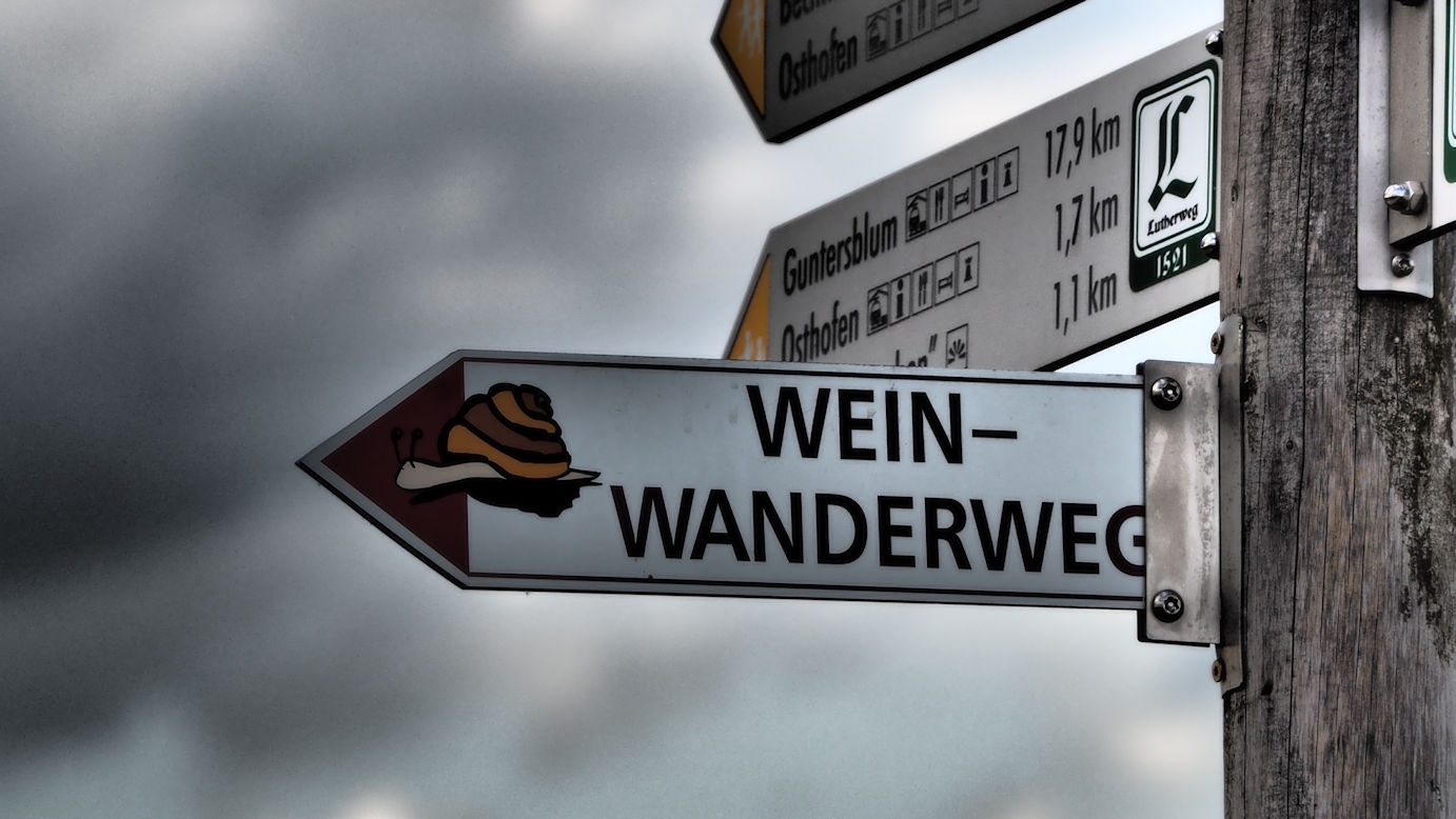 Durch Weinfelder, ein Stück auf dem hier verlaufenden Jakobsweg und dem Lutherweg entlang, mit Blick zur Bergstraße gelangen wir wieder zu unserem Stellplatz. Dieser ist wirklich wunderschön. Was allerdings die Wohnmobilansammlung (angeblich ein hiesiger Womoclub) auf der zum Weingut gehörenden Wiese soll? Sieht auf jeden Fall aus wie „was scheren mich Coronaverordnungen“….