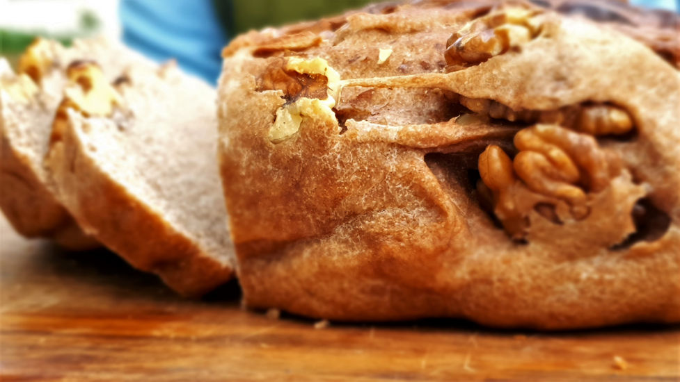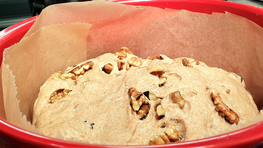 Kaum angekommen heißt es: Brotnachschub herstellen! Fix ist die Hefe mit etwas Zucker angerührt und einige Minuten später der Vollkorn-Walnuss-Brotteig fertig zum gehen…