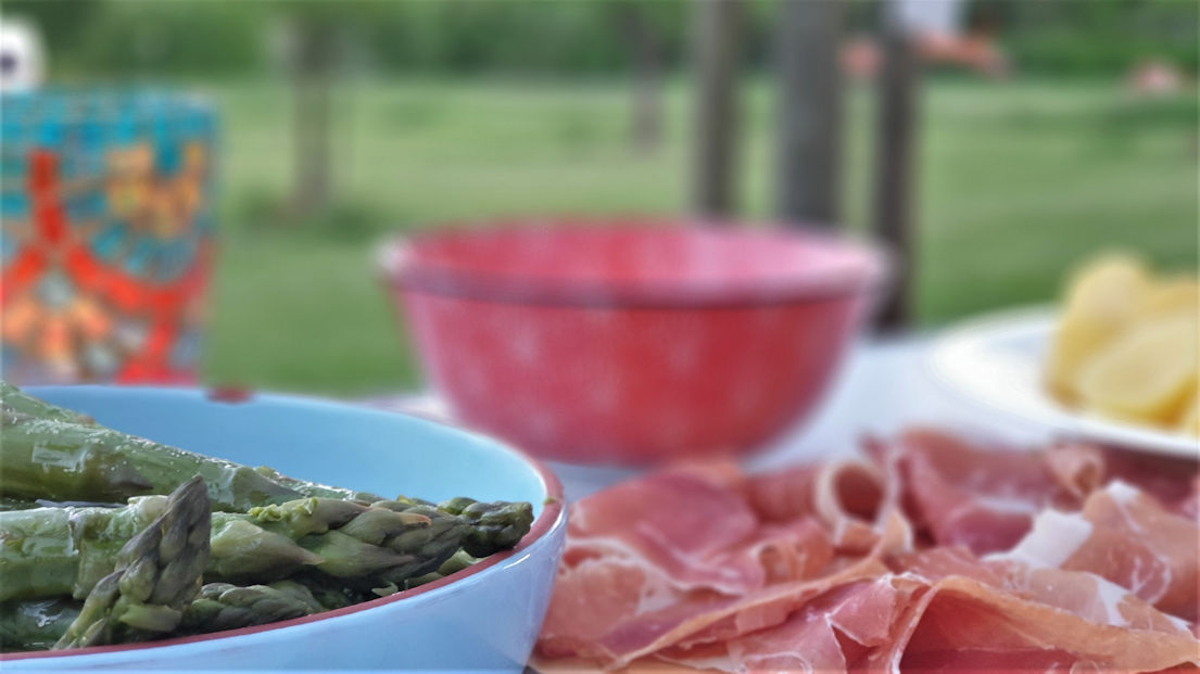 Und dann geht es los mit dem ersten „Womo Aperitivo“ seit langem, während die vorbereiteten Kartoffeln und der grüne Spargel langsam auf Temperatur kommen, .