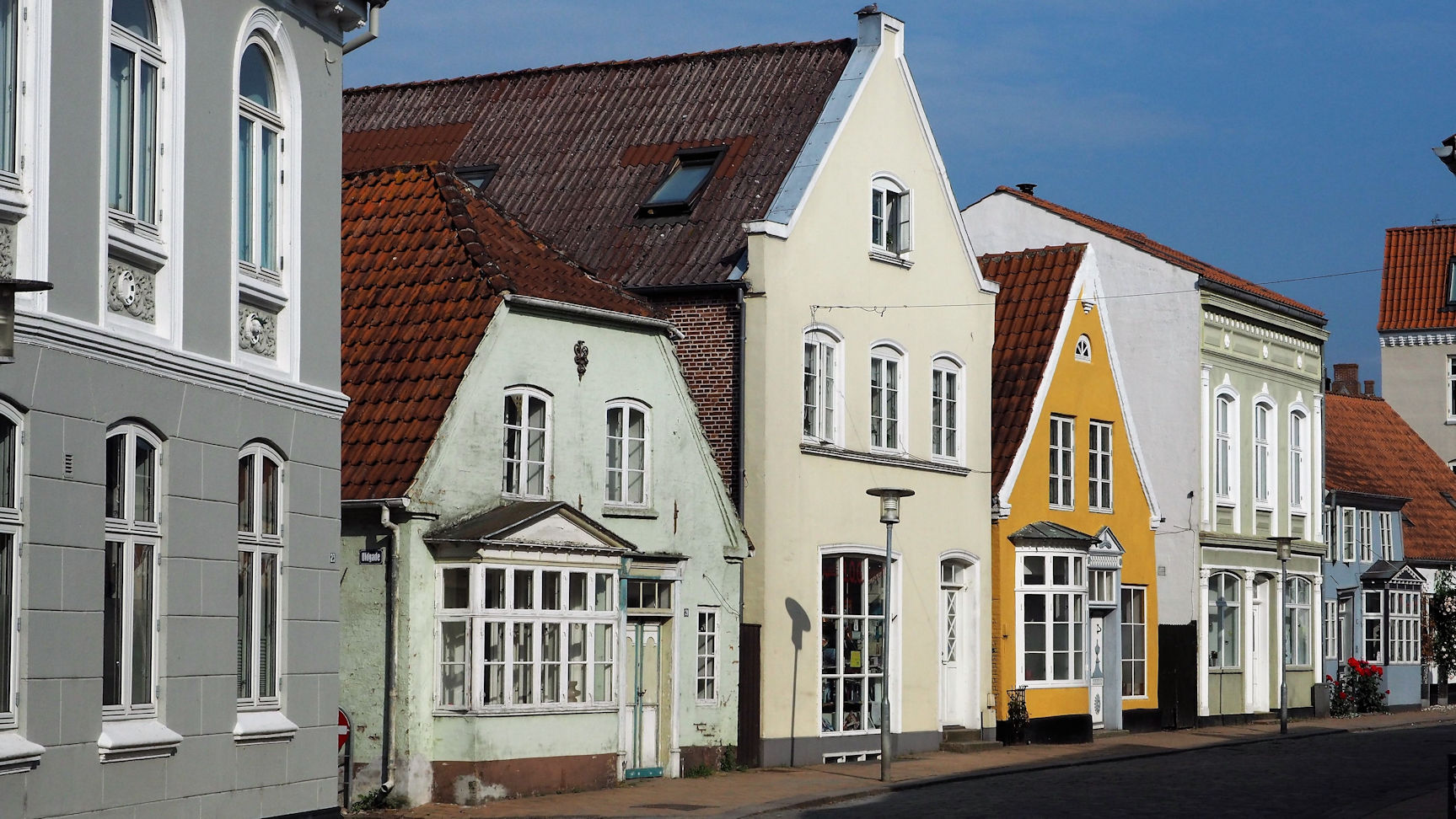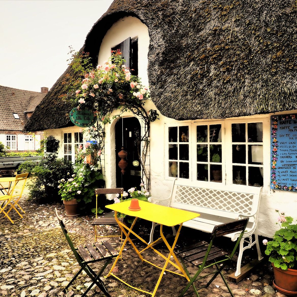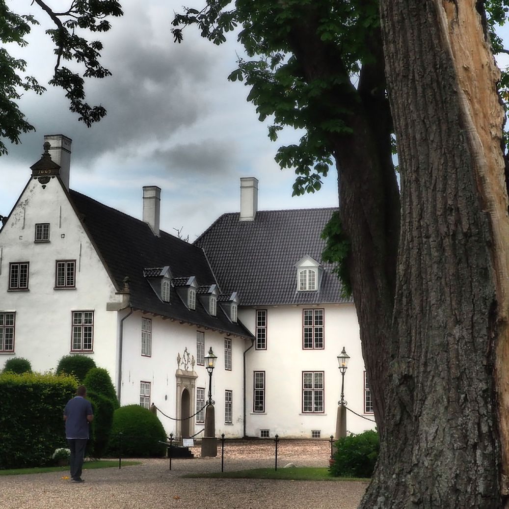 Mitten im Zentrum befinden sich wundervolle alte Häuser eines Klosters und die „Gamle Apotek“, die alte Apotheke. Heutzutage ein Laden für Deko und schöne Dinge. Aber wir sind zu früh hier. Nicht nur dieser Laden hat geschlossen. Die ganze Kleinstadt ist gerade erst am Erwachen. Dennoch macht es Spaß, durch die Gassen zu schlendern und die bewundernden Blicke für unsere Hunde zu genießen. Der ein oder andere Passant spricht uns auch an, aber außer ein paar Begrüßungsfloskeln gibt bei uns kein Dänisch. Jedenfalls noch nicht!