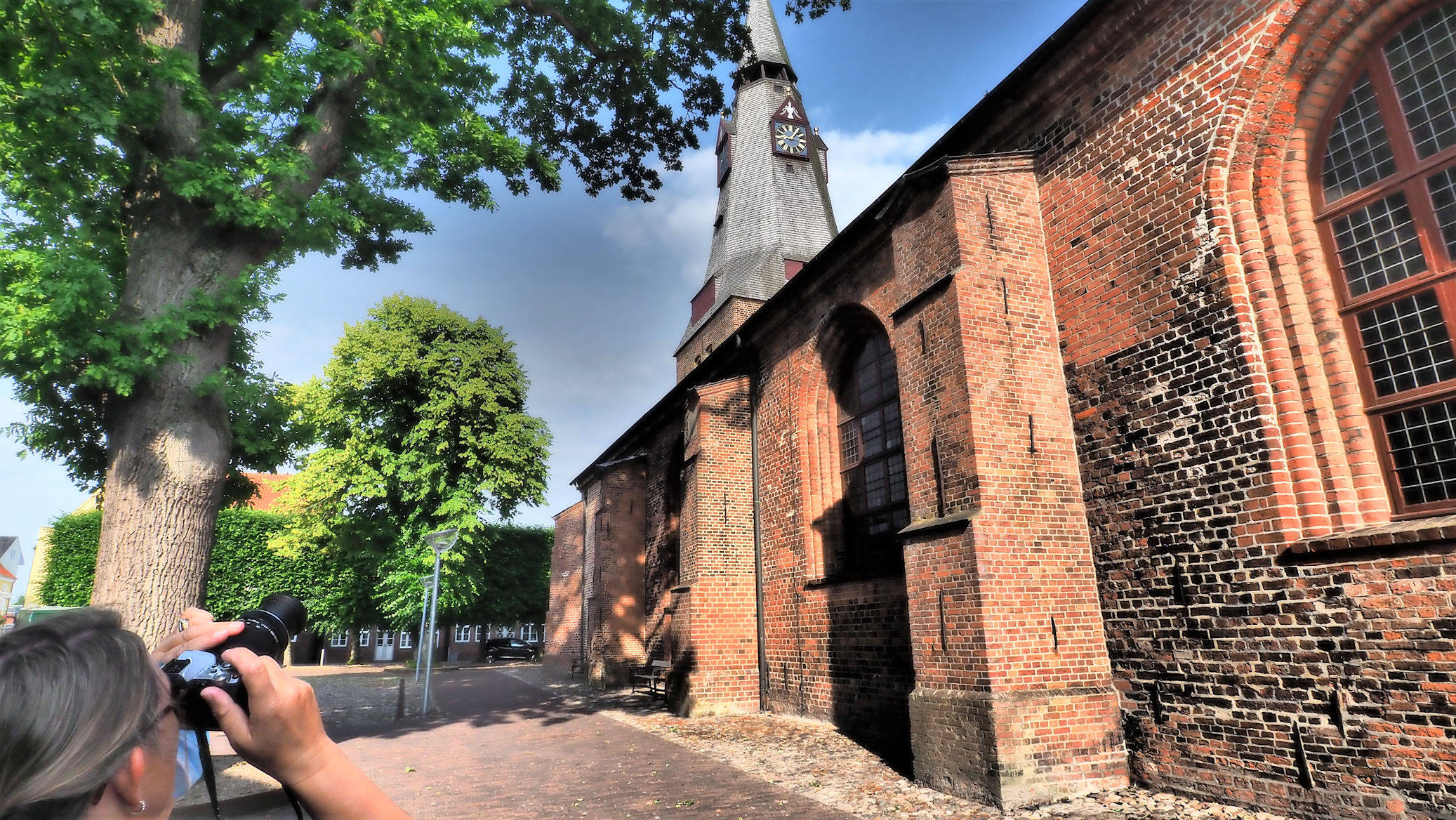 Als wir zum ersten Mal wach werden, ist es schon hell. Doch der Blick auf die Uhr überrascht: es ist gerade mal vier und so hell wie bei uns zuhause um 6 Uhr. Um 7 haben die Fellzwerge dann ausgeschlafen und gegen halb neun beginnt sie: unsere erste Tour in Dänemark. Nach einem gemütlichen 10-minütigen Spaziergang erreichen wir das schöne Zentrum von Tönder – einer der ehemals bedeutenden Hafenstädte im Süden Dänemarks. Einige Sturmfluten setzten der reichen Stadt genauso zu wie die Pest. Endgültig verlor Tönder aber seine Bedeutung, als durch Landgewinnungsmaßnahmen an der Ostküste der direkte Zugang zum Meer verschwand. Denn was ist schon eine Hafenstadt ohne Meer?