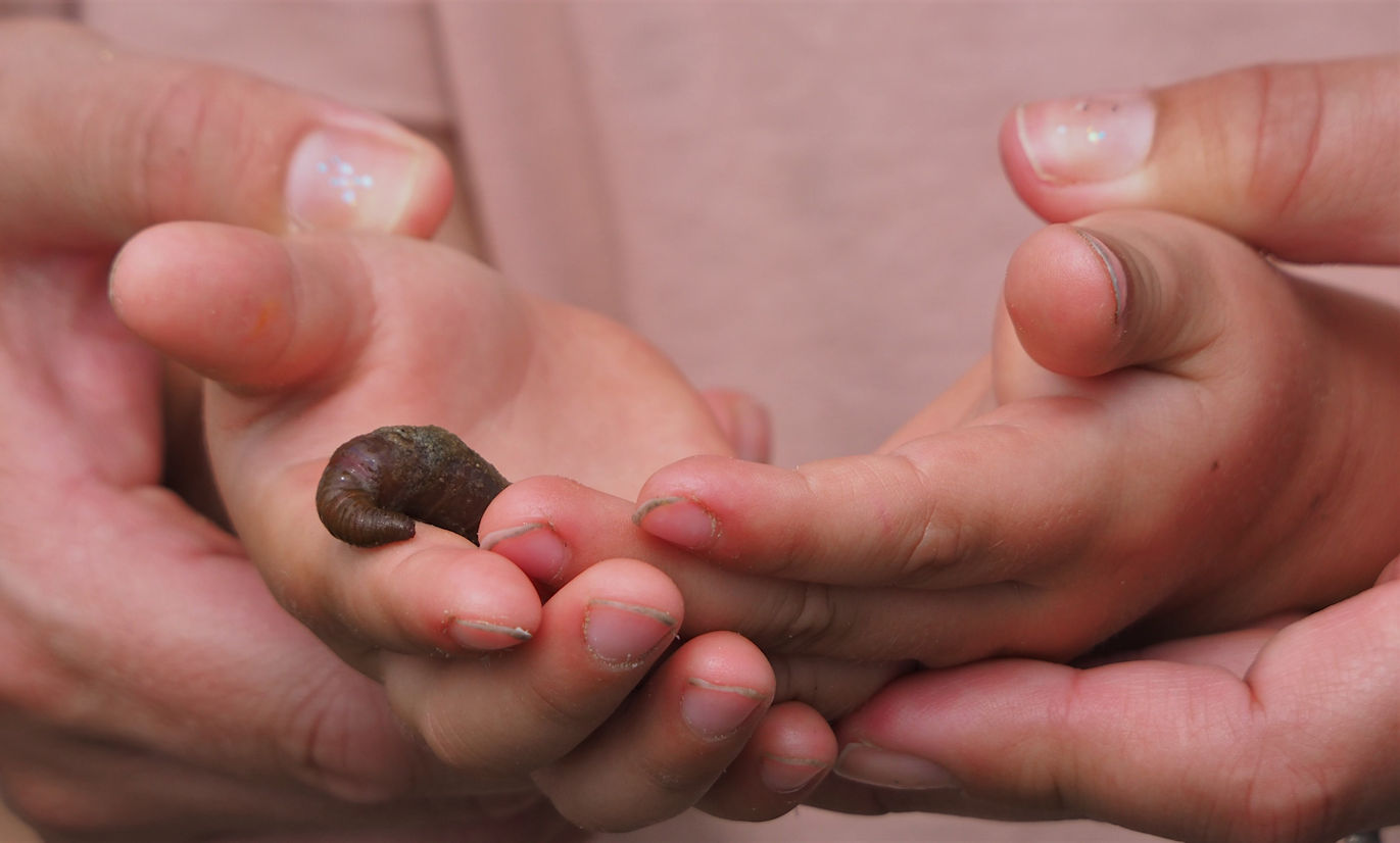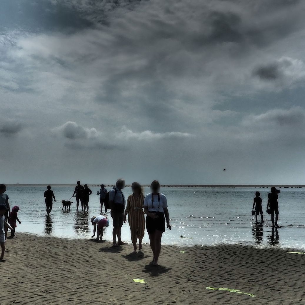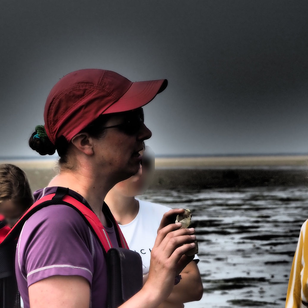 Unterwegs erfahren wir einige wissenswerte Dinge über die Lebewesen des Sandes. Unter anderem beobachten wir Herzmuscheln, graben nach einem Wattwurm und schauen uns diverse Überbleibsel ehemaliger Wattbewohner an.
