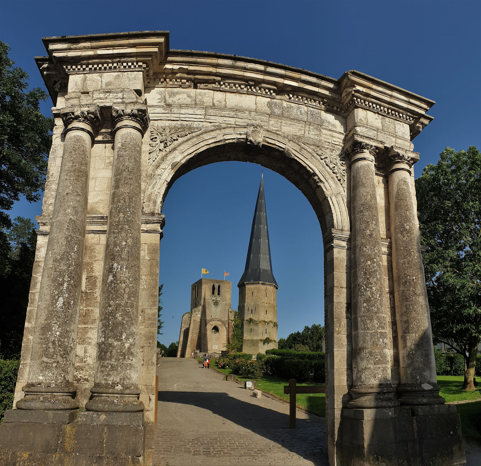 Ein kurzer Plausch mit der netten Bedienung – unserFranzösisch ist solala – und weiter geht es in Richtung Klosterruine der Stadt. Das Licht jetzt gegen 18 Uhr an diesem Ort ist irgendwie magisch und unsere beiden Fellzwerge sind es auch. Wahrscheinlich merken die beiden noch viel mehr als wir, wie richtig unsere Entscheidung war.