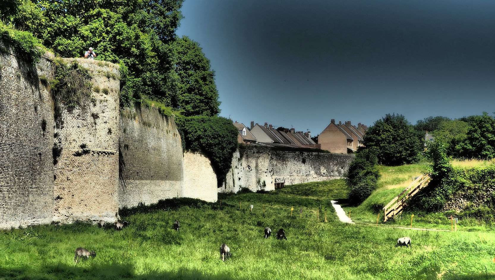 Und dann sind wir gegen 13 Uhr endlich da. Im wundervollen Bergues. Nach einem kurzen Mittagssnack heißt es erst einmal ausruhen von der langen Fahrt. Um halb 5 geht es dann los zu Fuss in die Stadt. Hatten wir schon erwähnt, dass der Womoplatz hier in Bergues direkt vor der Stadtmauer liegt?