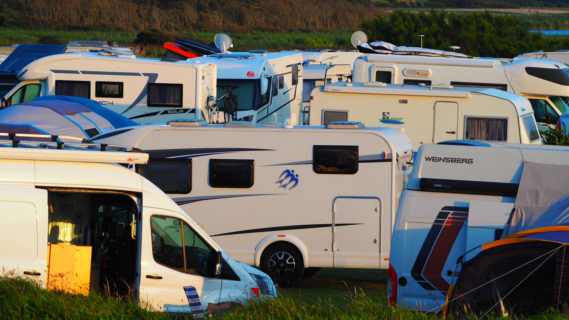 Schon als wir uns dem Ort nähern, sind wir beeindruckt. So, wie sich diese Landschaft präsentiert, haben wir uns Irland vorgestellt. Auch bei Einfahrt in den kleinen Ort wird dieser Eindruck beim Passieren des Schlosses noch verstärkt. Kurze Zeit später, nach einem Plausch mit einem Paar aus Mailand und Kuscheln derer alten Shih Tzu Dame, stehen wir auf unserem Platz. Fast 11 Uhr – höchste Zeit fürs Frühstück. Hinter unserem Womo, windgeschützt in der Sonne, ist es wunderbar warm, aber sobald man etwas vom Wind abbekommt…fast ein wenig wie Herbst.