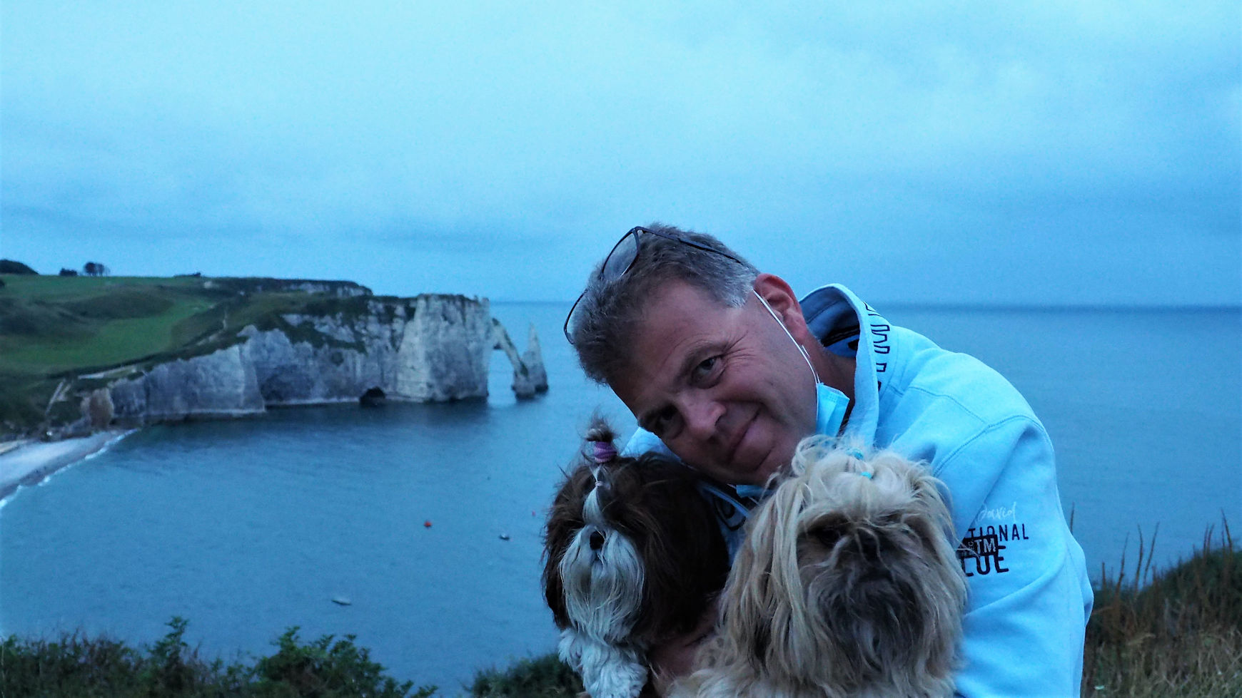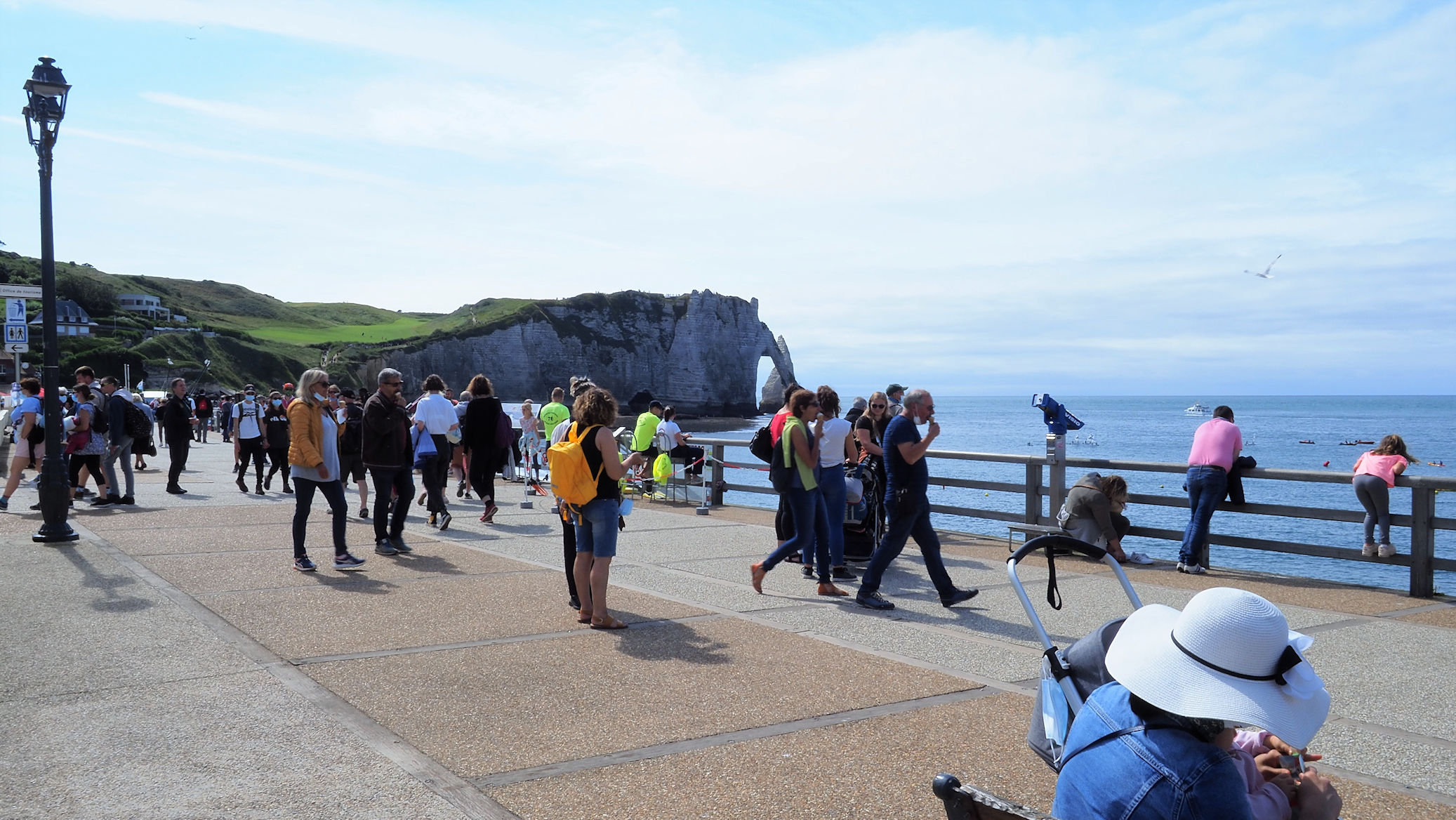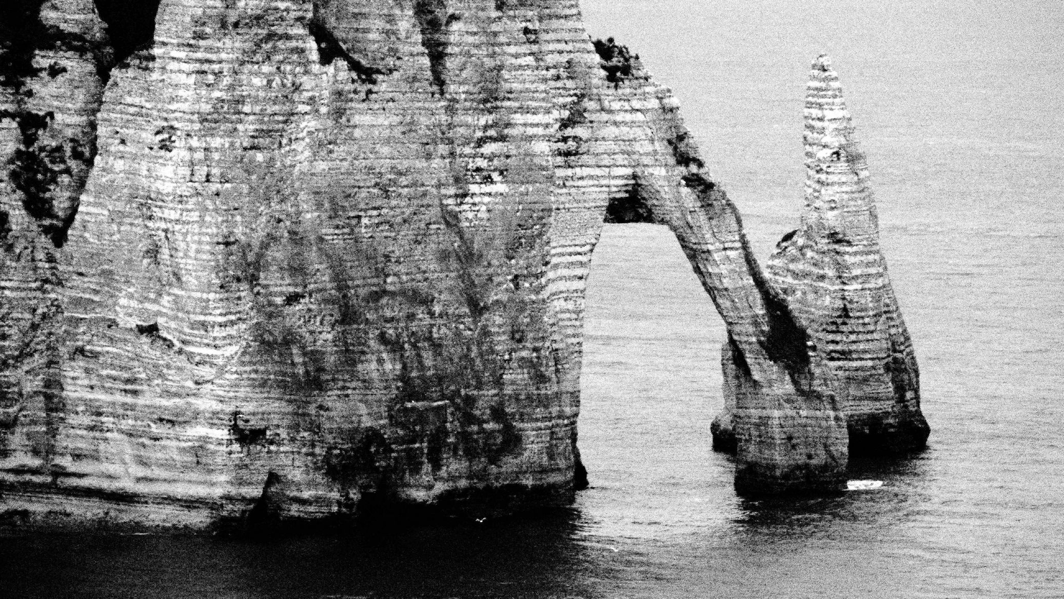 Wir nutzen die Mittagszeit, um wegen Ulli’s Weizenunverträglichkeit 2 Baguettes aus Dinkelmehl zu backen und verlassen erst gegen 15 Uhr zu Fuß den Campingplatz in den überfüllten Ort Étretat. Die Sonne scheint und das auflaufende Wasser beschert uns etwas „Meer“ unter dem Torbogen. Es ist wirklich total voll, aber die Felsen sind auch wirklich schön. Dass aber zwei Löcher im Fels einen solchen Hype auf Menschen auslösen können, ist schon ein wenig verwunderlich.