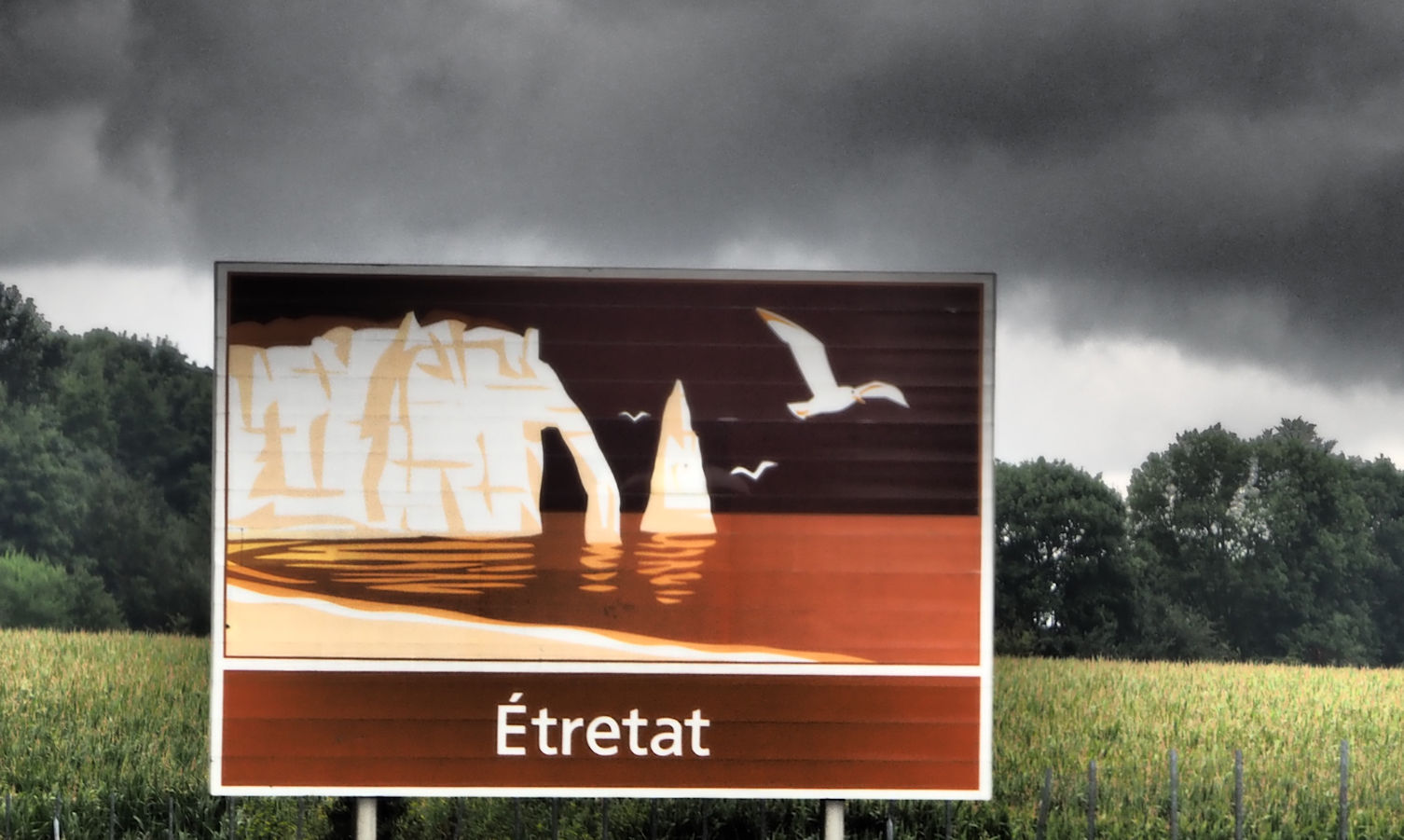 Also fahren wir weiter und erreichen um halb 11 Das vollgeparkte Étretat. Wohnmobile links und rechts an der Straße lassen Schlimmes vermuten. Witzigerweise hatte die Dame am Telefon aber recht und wir sitzen kurze Zeit später beim Frühstück vor unsrem Womo.