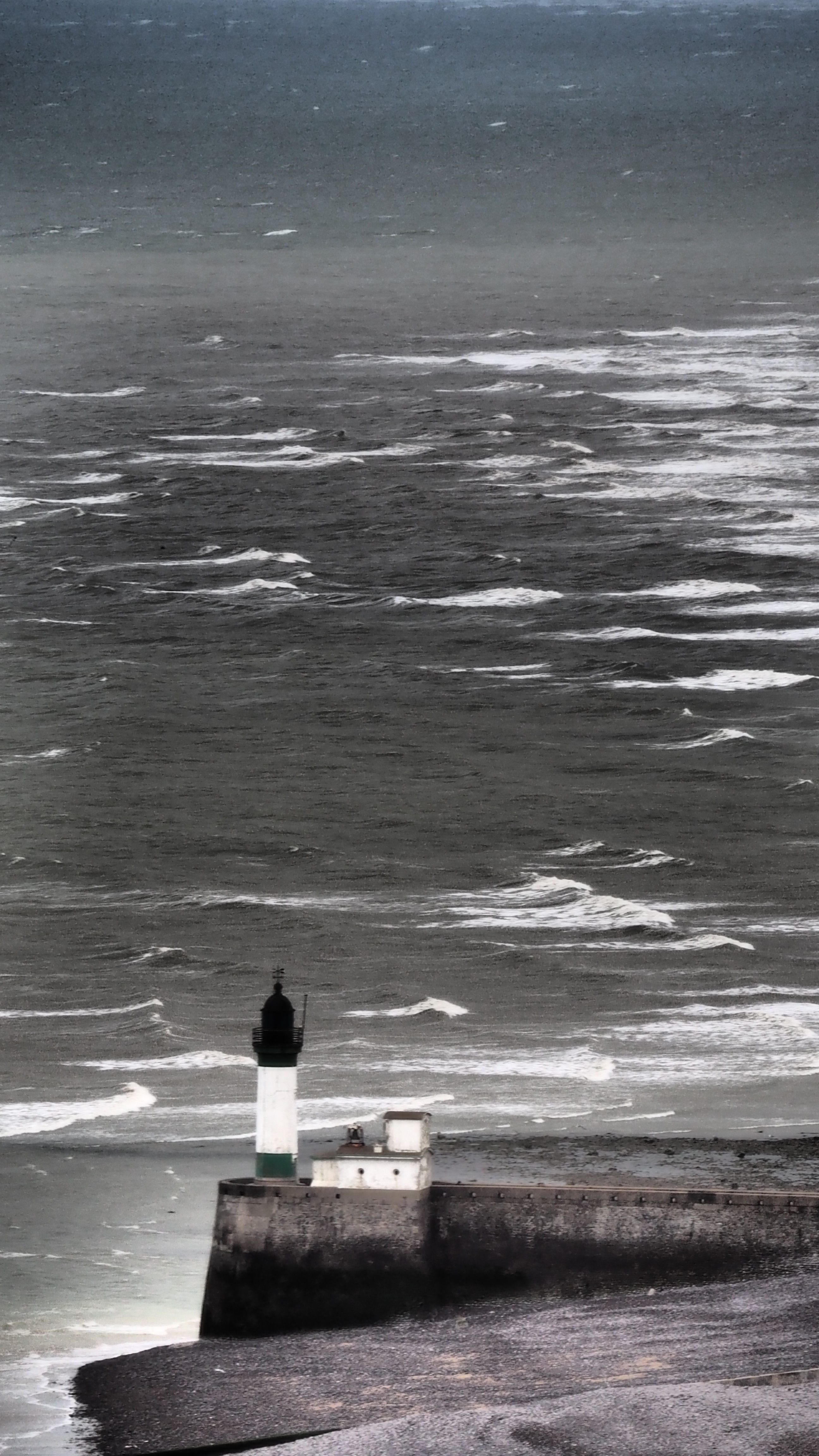 Die Nacht ist sehr windig, was hier oben auf dem Falaise, dem Felsen direkt über dem Meer, besonders deutlich zu spüren ist. Auch regnet es fast die ganze Nacht. Gegen 5 Uhr imitiert irgendein Spaßvogel das Gehupe der Bäckerwagen, die diese Stellplätze anfahren. Mit einem Grinsen im Gesicht über die vielen Camper, die nun denken, sie hätten verschlafen, schlafen wir 4 auch noch mal ein und erwachen bei grauem Himmel gegen halb 8.