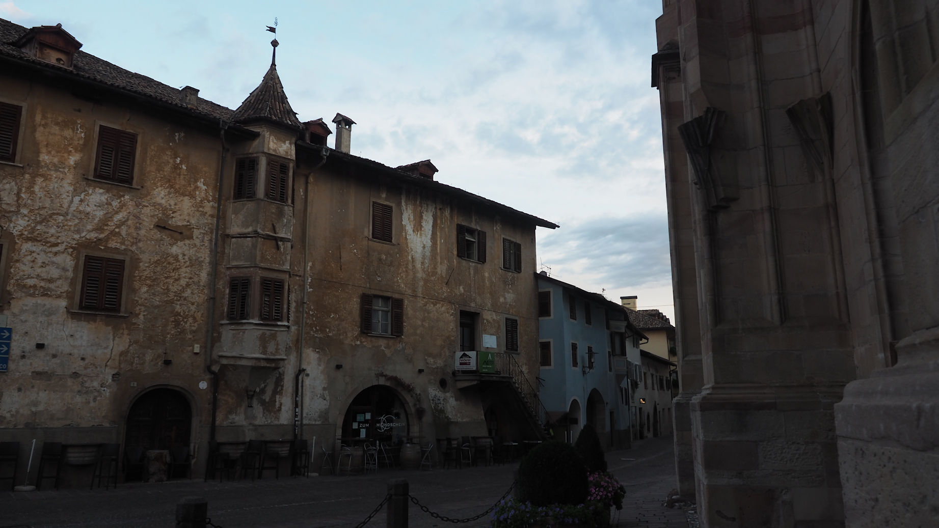 Im Caffè beim Bäcker ist schon richtig viel Leben. Aber vor unserem ersten Caffèbesuch müssen wir erst eine Ortsrunde mit den Fellzwergen drehen. Der Morgenspaziergang bietet schöne Ausblicke im Sonnenaufgang auf den Schlern und die kleine, bezaubernde Ortschaft St. Pauls. Und das erste Urlaubsfrühstück ist herrlich.