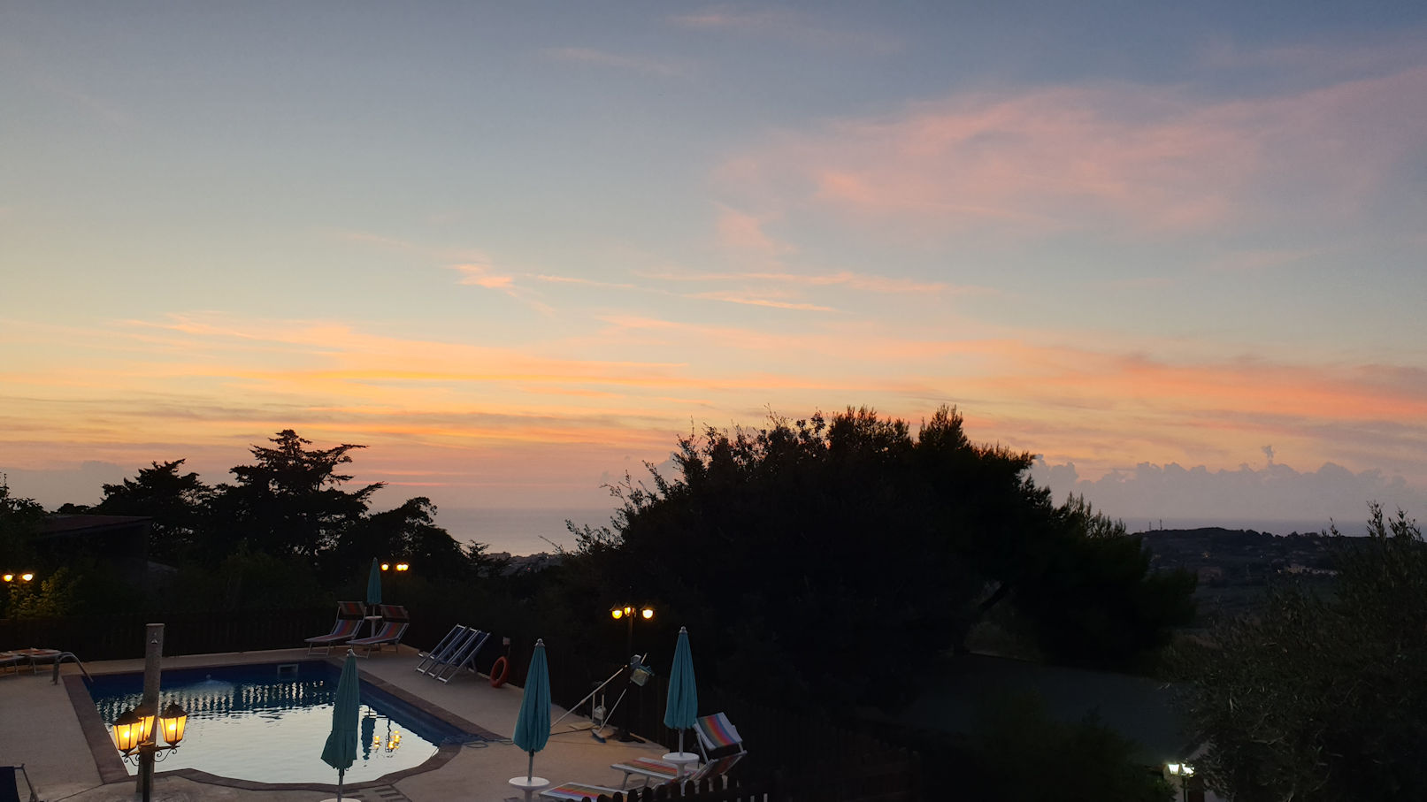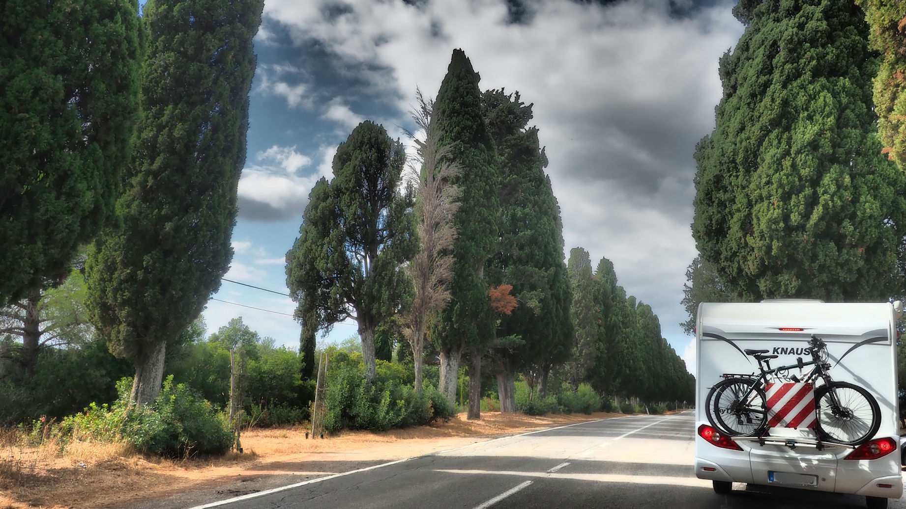 Unser Womo parkt auf einem tollen Agricamping ganz ortsnah. Wir sitzen draußen, quasi im Olivenhain. Die Grillen zirpen laut und bei etwa 20 Grad jetzt um 8 Uhr abends schmeckt ein Glas Weißwein hervorragend.