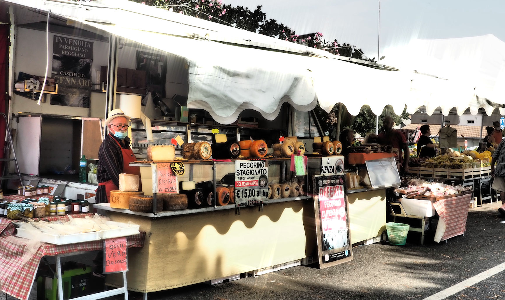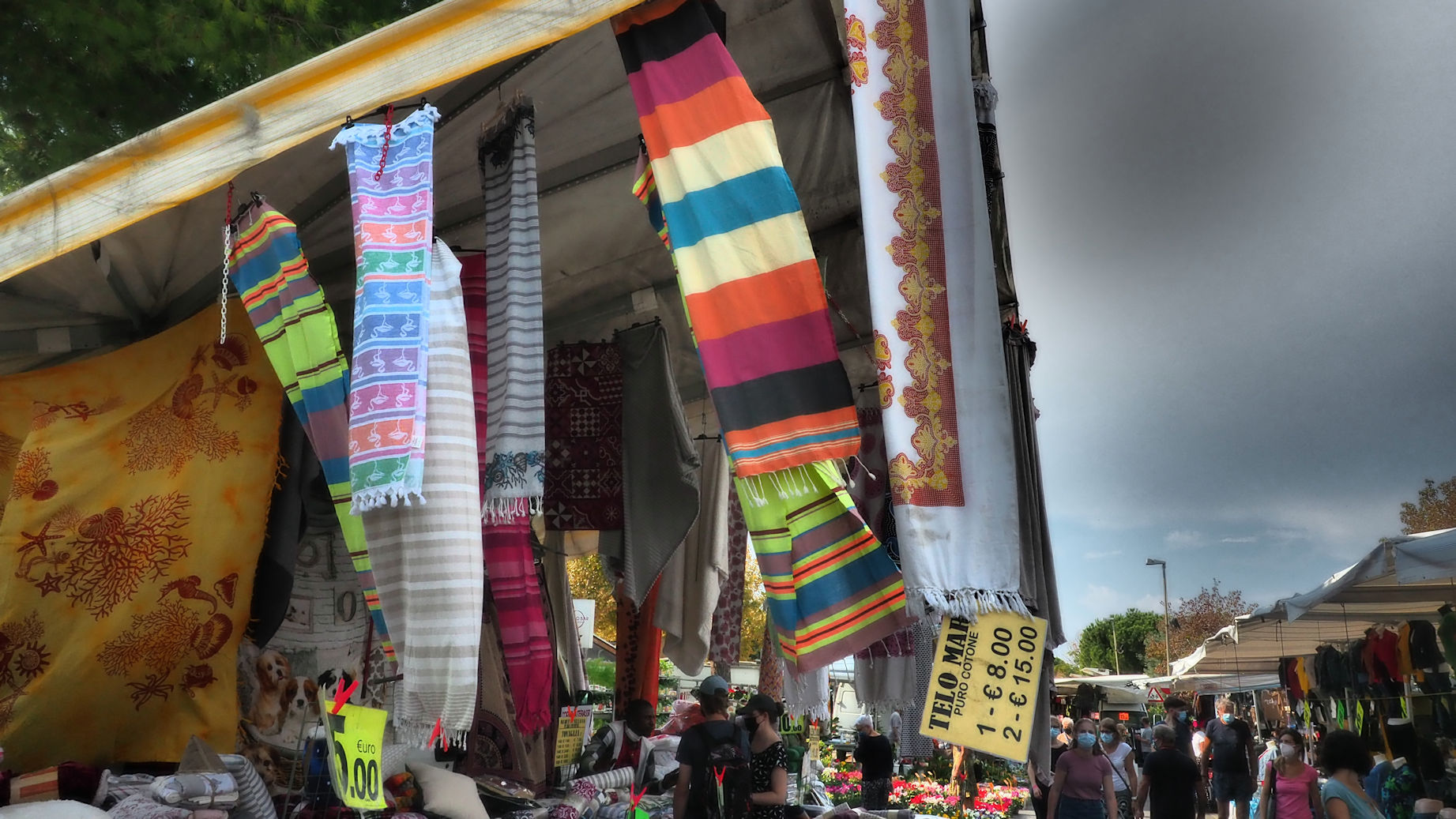 Es ist sehr warm. Fast schon zu warm. So kommt es auch, dass wir nur ein paar Kleinigkeiten erstehen, ein paar Eindrücke für Euch im Bild festhalten und kurze Zeit später bei unserer kleinen Bar „Al Corte del Bacco“ bei einer Cola Zero im Schatten sitzen und mit der Planung der nächsten Tage beginnen, die uns eigentlich nach Venedig führen sollten. Jedoch sagt der Wetterbericht ca.50 l Regen pro Quadratmeter für einen unserer beiden Besuchstage in der Stadt vorher. Also sind wir gerade am Umplanen. Irgendwie sehr spannend.