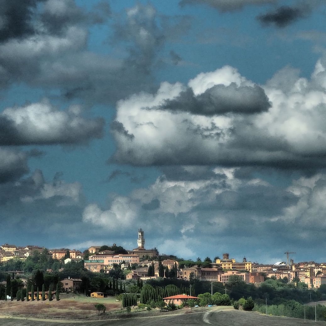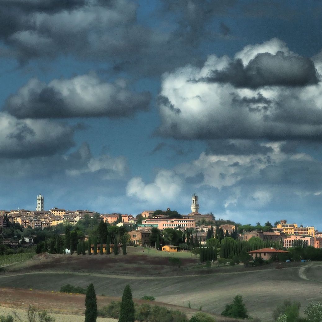 Kaum verlassen wir die Region um San Vincenzo ziehen die Wolken immer dichter zu. Also fast kein Licht, um für Euch schöne Bilder zu machen. Eine kleine Lücke mit Sonne haben wir genau in dem Moment als wir von Grosseto kommend auf die Stadt Siena zufahren. Eine tolle Stimmung um diese schöne Stadt abzulichten.