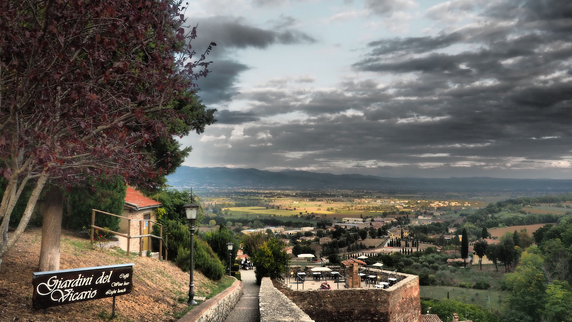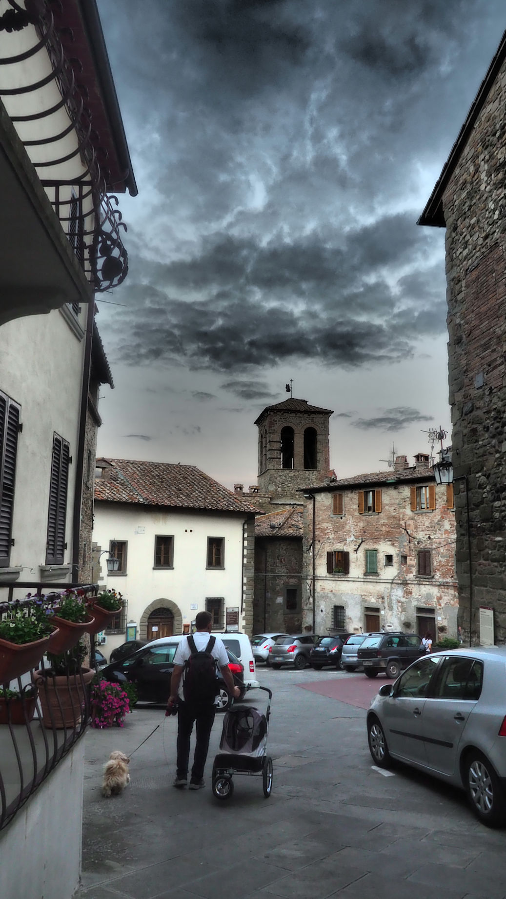 Anghiari – ein Städtchen mit mittelalterlichem Charme, ein paar wundervollen Plätzen und einer Bar mit überirdisch schöner Terrasse. Schade, dass seit heute nachmittag die Sonne wenig bis gar nicht zu sehen ist. So müssen wir für Euch mit dem Licht arbeiten, das uns zur Verfügung steht. Die Tiberebene unterhalb von Anghiari war übrigens Schauplatz der Schlacht Florenz gegen Mailand am 29. Juni 1440. Später dann gemalt von Leonardo da VInci…