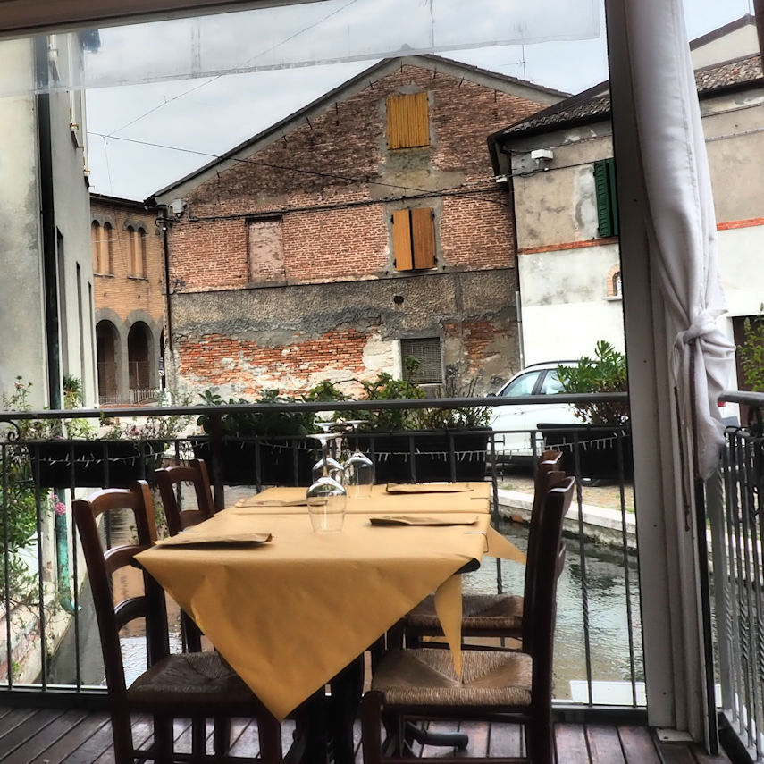 Gegen 14 Uhr fragen wir nach einem Tisch in der kleinen am Kanal liegenden und fast voll besetzten Trattoria Melixa. Und wir haben Glück. Wenige Minuten später sitzen wir auf einer derer Terrassen über dem Kanal und studieren die Karte.