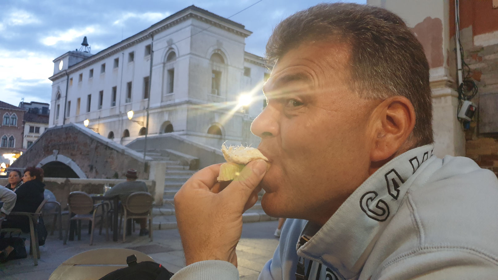 Als wir zurückkommen, ist Pause für alle angesagt, wir wollen ja nochmals zu Fuß in die Stadt. Denn anders als in anderen Regionen Italiens gibt es hier nicht den typischen Aperitivo, sondern es gibt sogenannte Cicchetti. Und hier in Chioggia vor allem mit Fischspezialitäten. Den dürfen wir nicht verpassen…