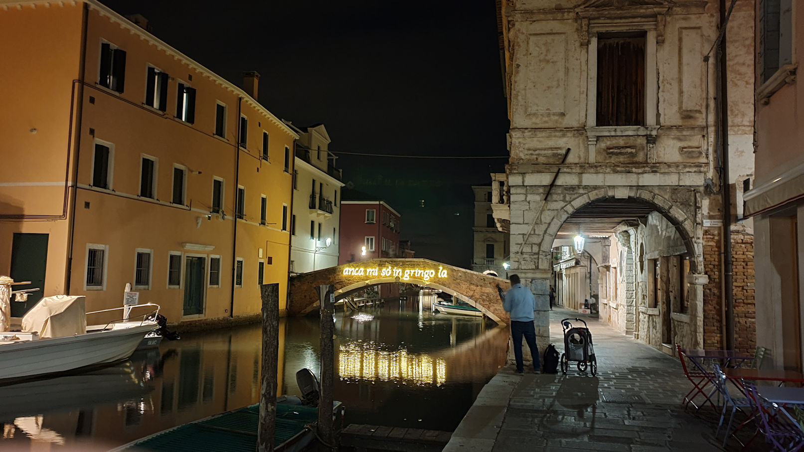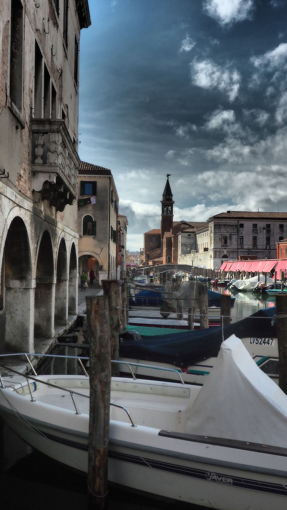 Nach einer unruhigen, gewittrigen Nacht verlassen wir den leider nachts wie ein Fußballstadion beleuchteten Stellplatz gegen halb 9 in Richtung Chioggia. Der Himmel zeigt sich grau nach dem Regen, so dass sich das Fotografieren unterwegs nicht wirklich lohnt….Dafür gibt es heute aber bewegte Bilder für Euch….