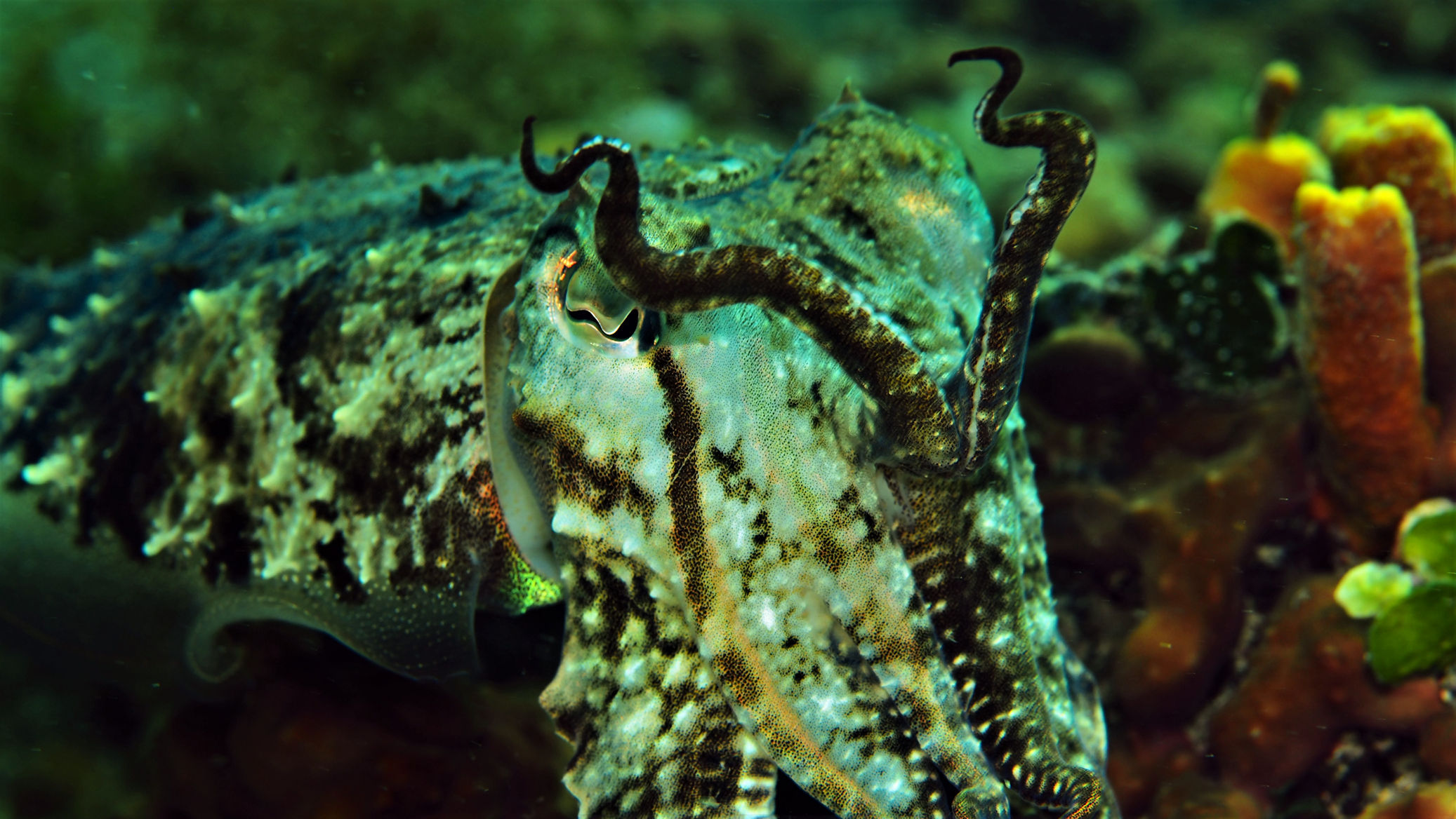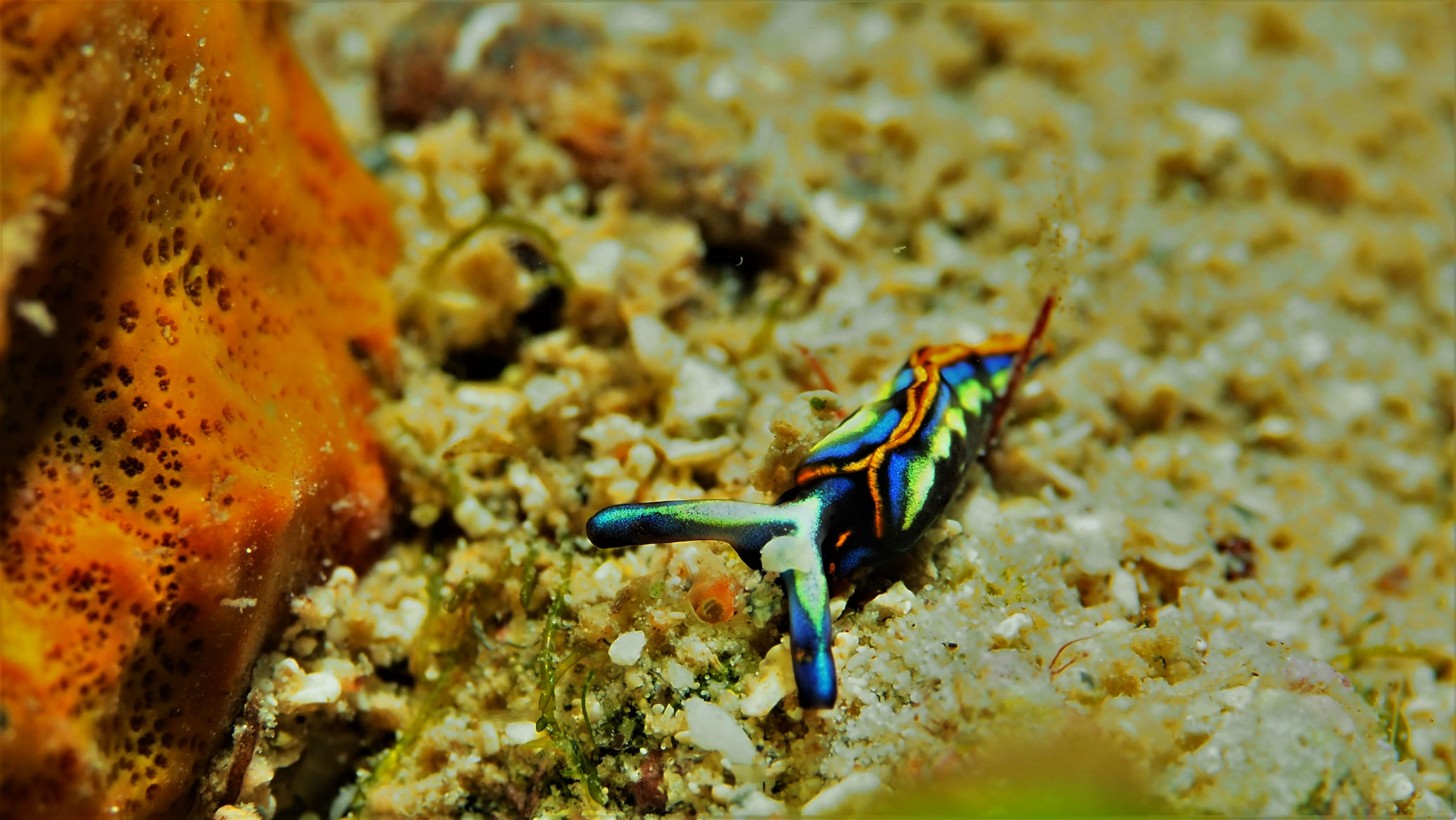 Die starke Dünung der letzten Tag ist immer noch bis auf Tiefen von ungefähr 7 m zu spüren, was es um so schwieriger macht, ruhige Bilder im Makrobereich zu machen. Aber eine kleine Auswahl haben wir natürlich für Euch zusammengestellt.