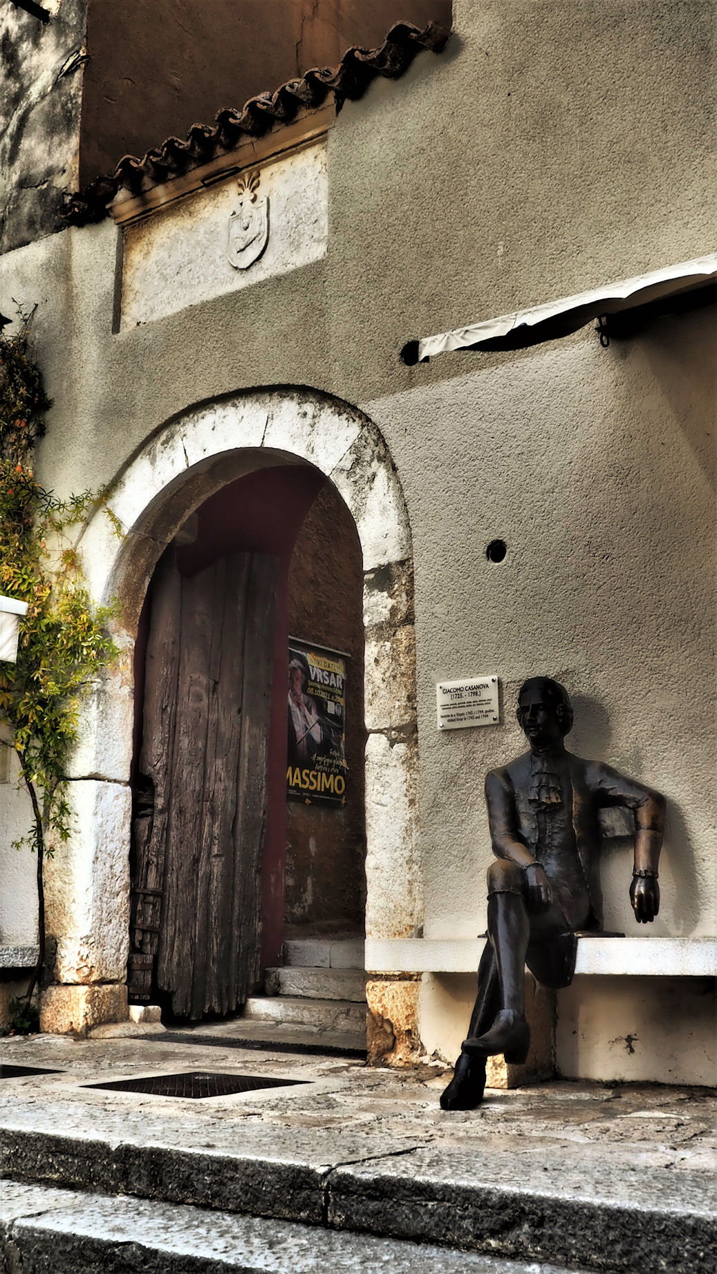 Vielleicht unternehmen wir deshalb nach unserem mittäglichen, 90-minütigem Buchttauchgang mit sehr guten Sichtweiten einen Spätmittagessen-Spaziergang, wir haben immerhin schon 15 Uhr, mit anschließendem Besuch in die kleine auf einem Hügel liegende Stadt. Es geht steil die Gassen hinauf und der Ort bietet ein paar malerische Winkel und natürlich ein kleines Casanova-Denkmal.